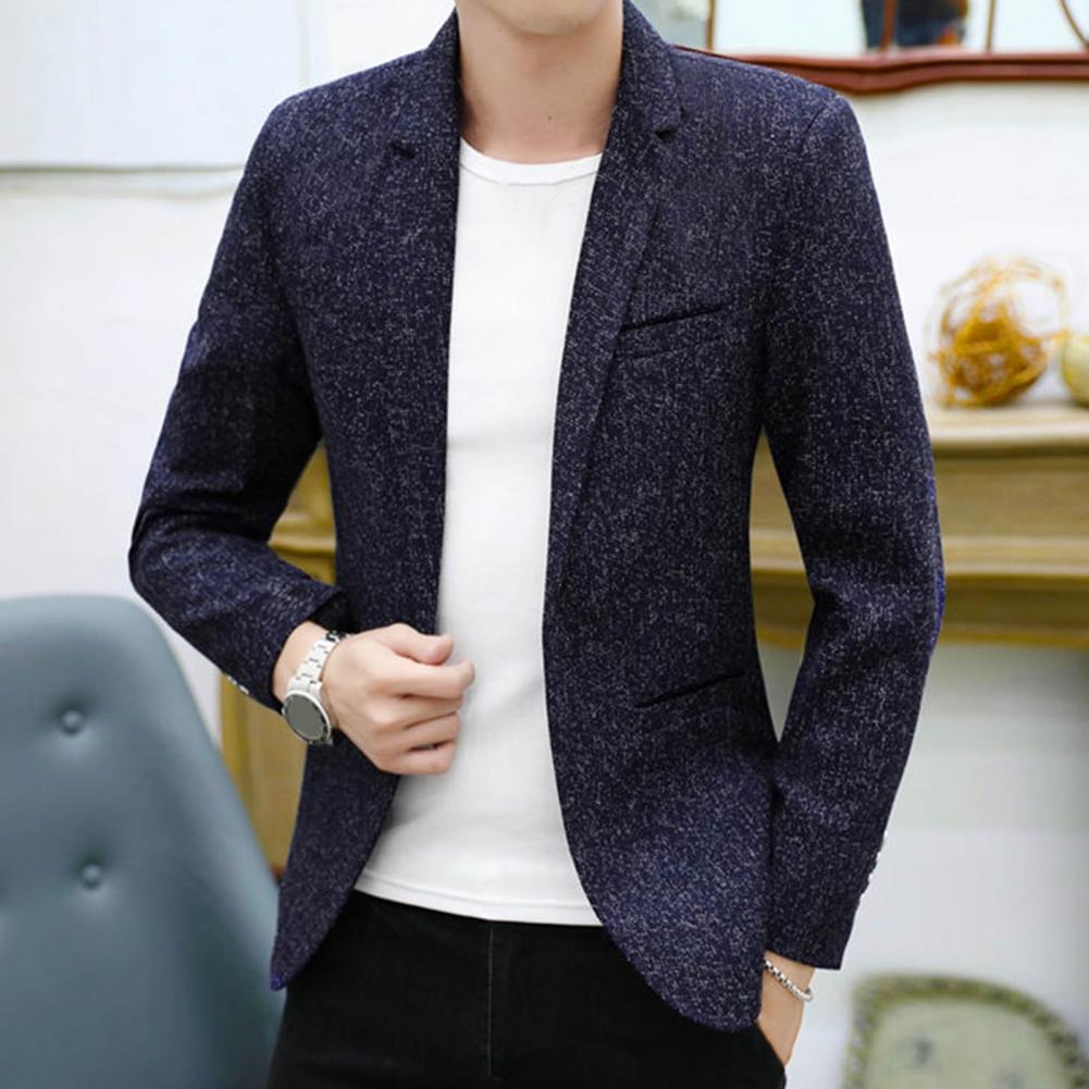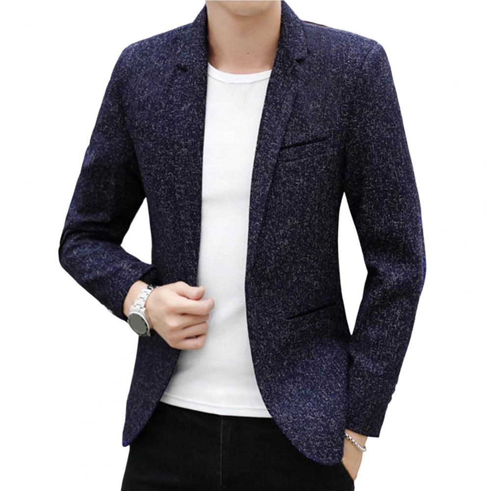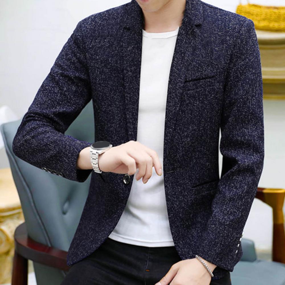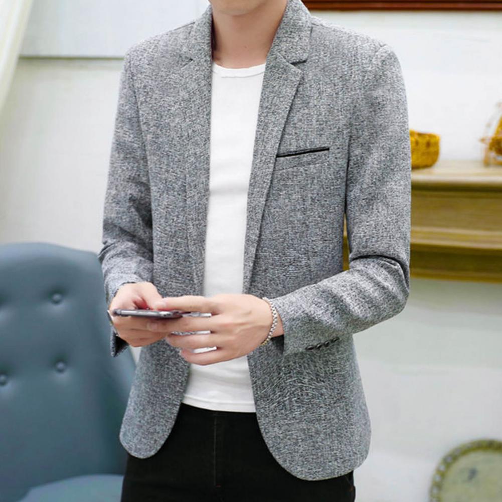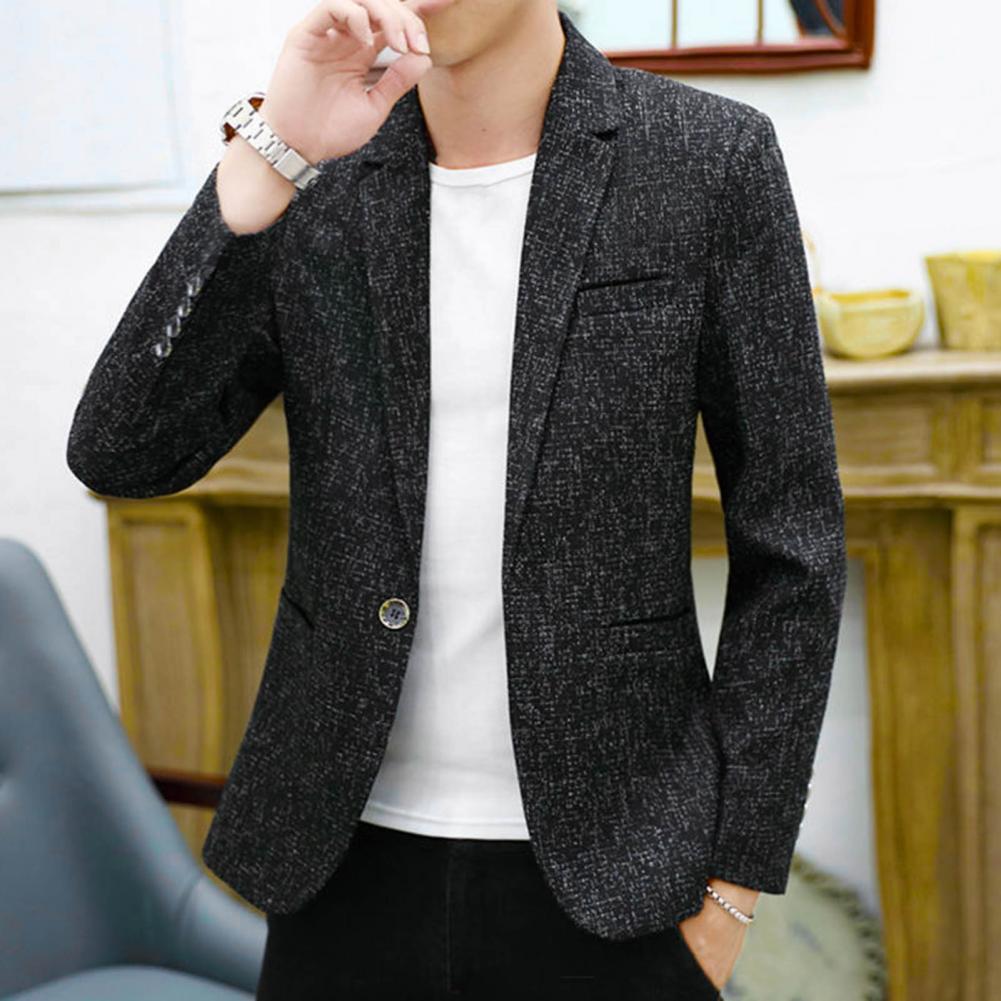 Spring Autumn Men Blazer Solid Color Turndown Collar One Button Slim Fit Korean Style Suit Jacket Streetwear