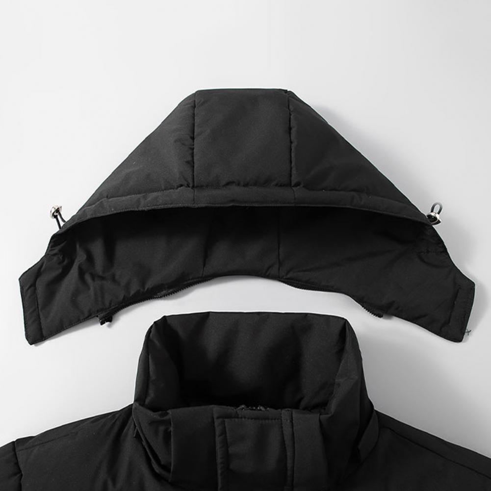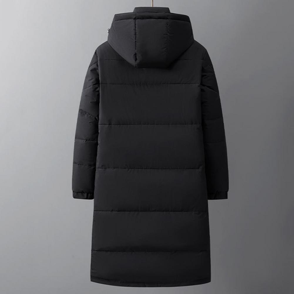 Men Women Cotton Jacket Hooded Drawstring Long Sleeve Warm Down Jacket Solid Color Mid-length Thickened Quilted Outwear