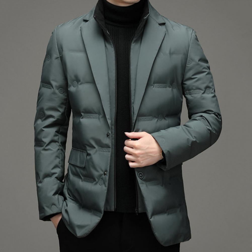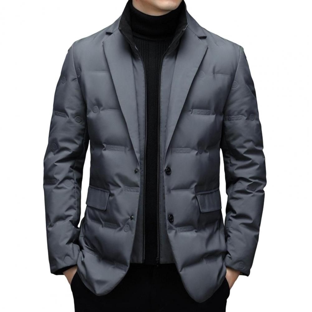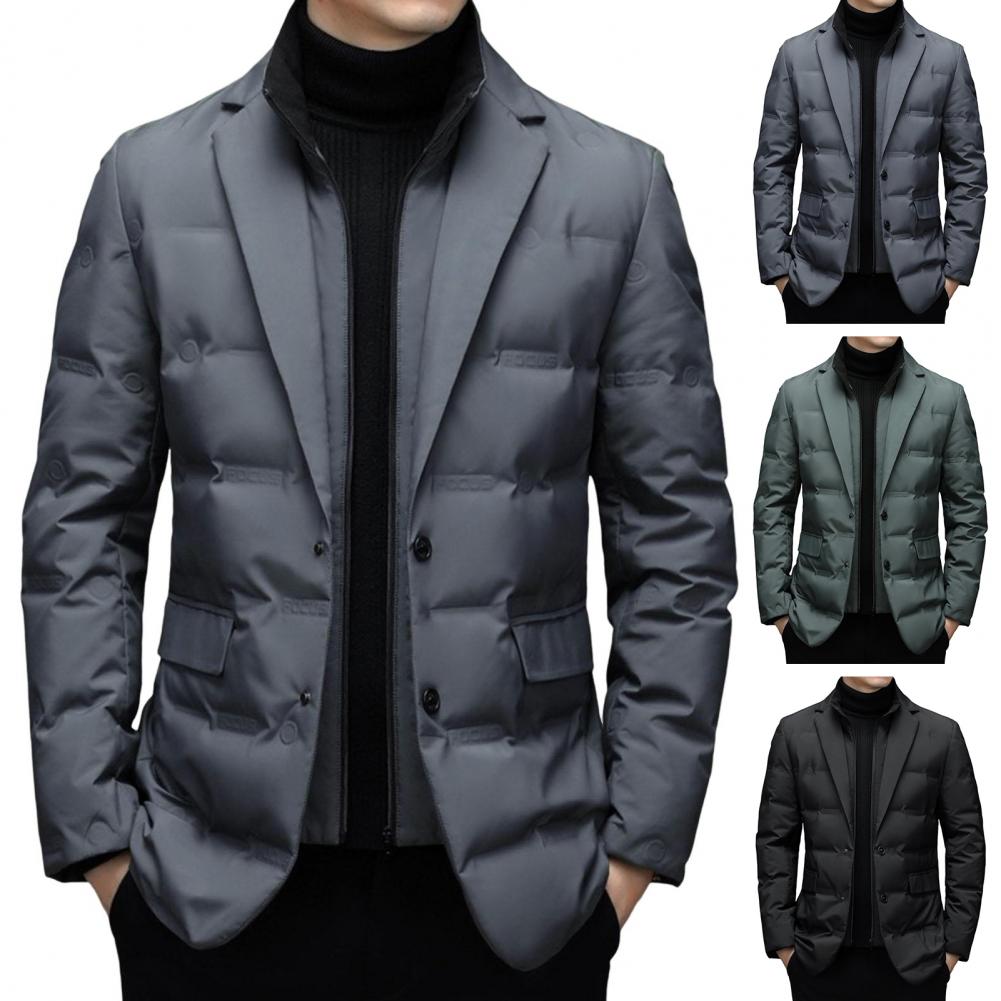 Men Cotton Suit Coat High Collar Suit Collar Long Sleeve Buttons Zipper Placket Suit Jacket Fake Two Pieces Quilted Outerwear