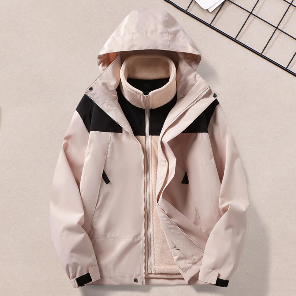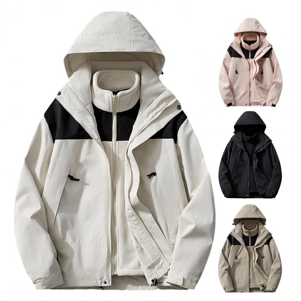 2Pcs/Set Trench Coat with Detachable Hood Contrasting Color Splicing Design Adjustable Cuffs Elastic Hat Outdoor Jacket Liner Set