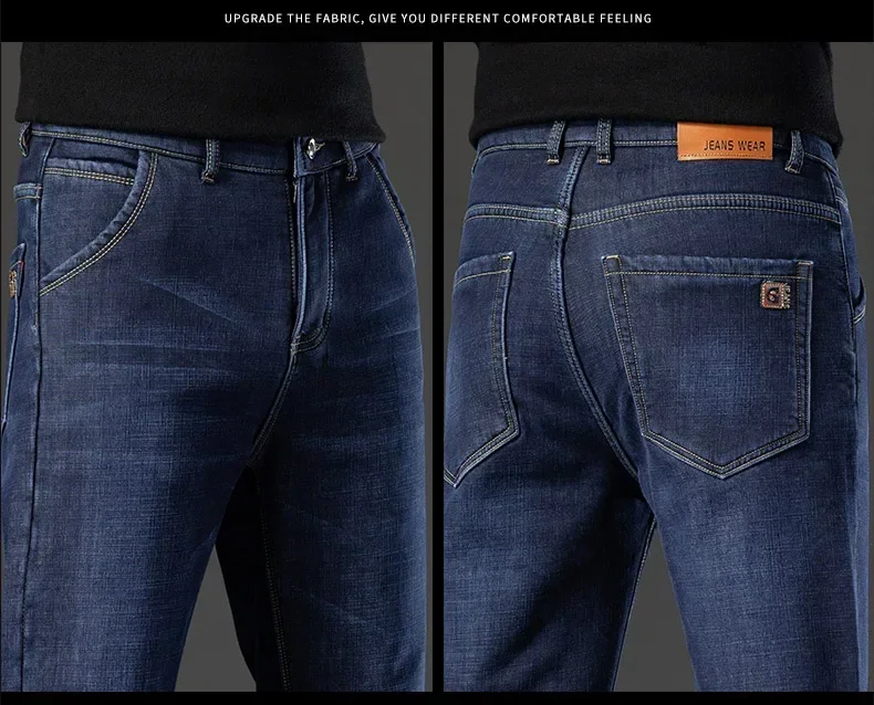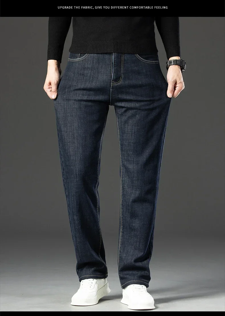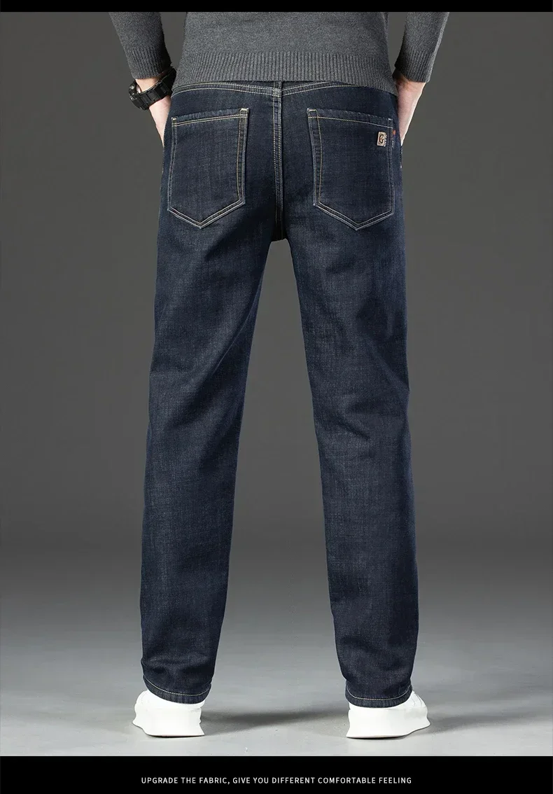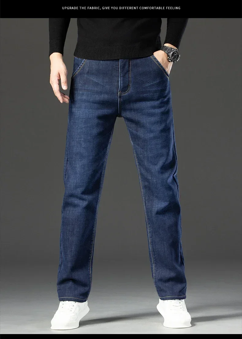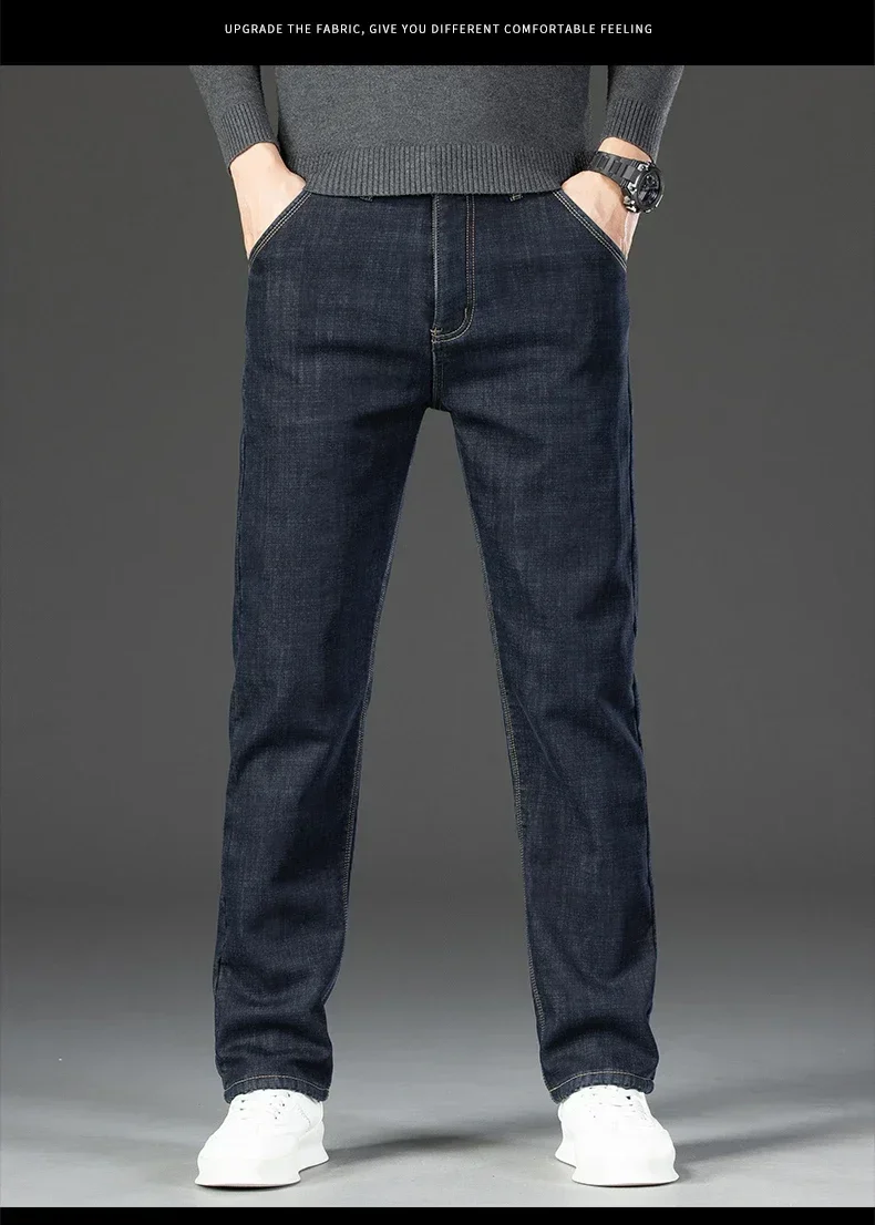 High Quality Men Fleece Jeans s Autumn Winter New Plus Size Thickened Warm Business Casual Slim Straight Denim Trouser Men Pants