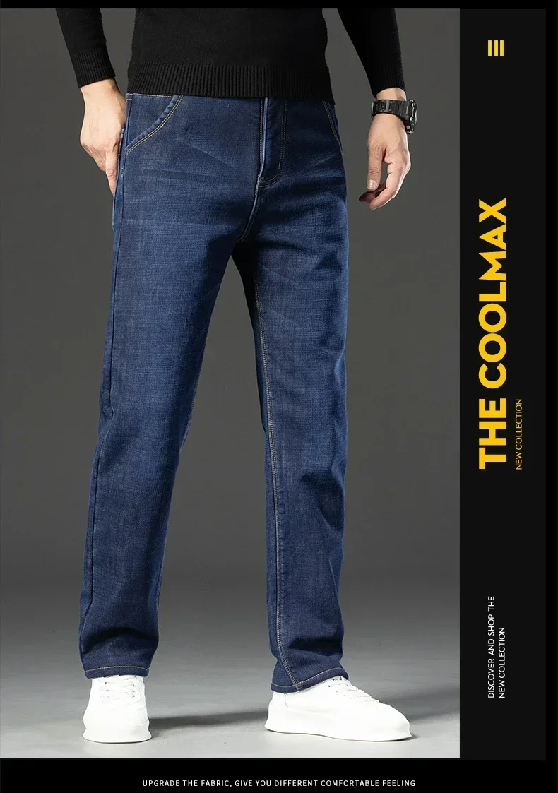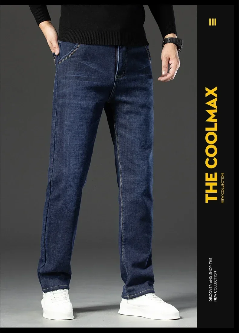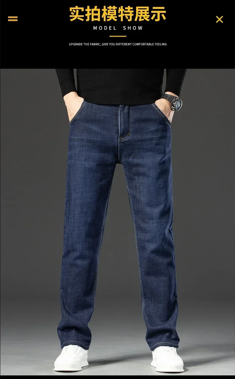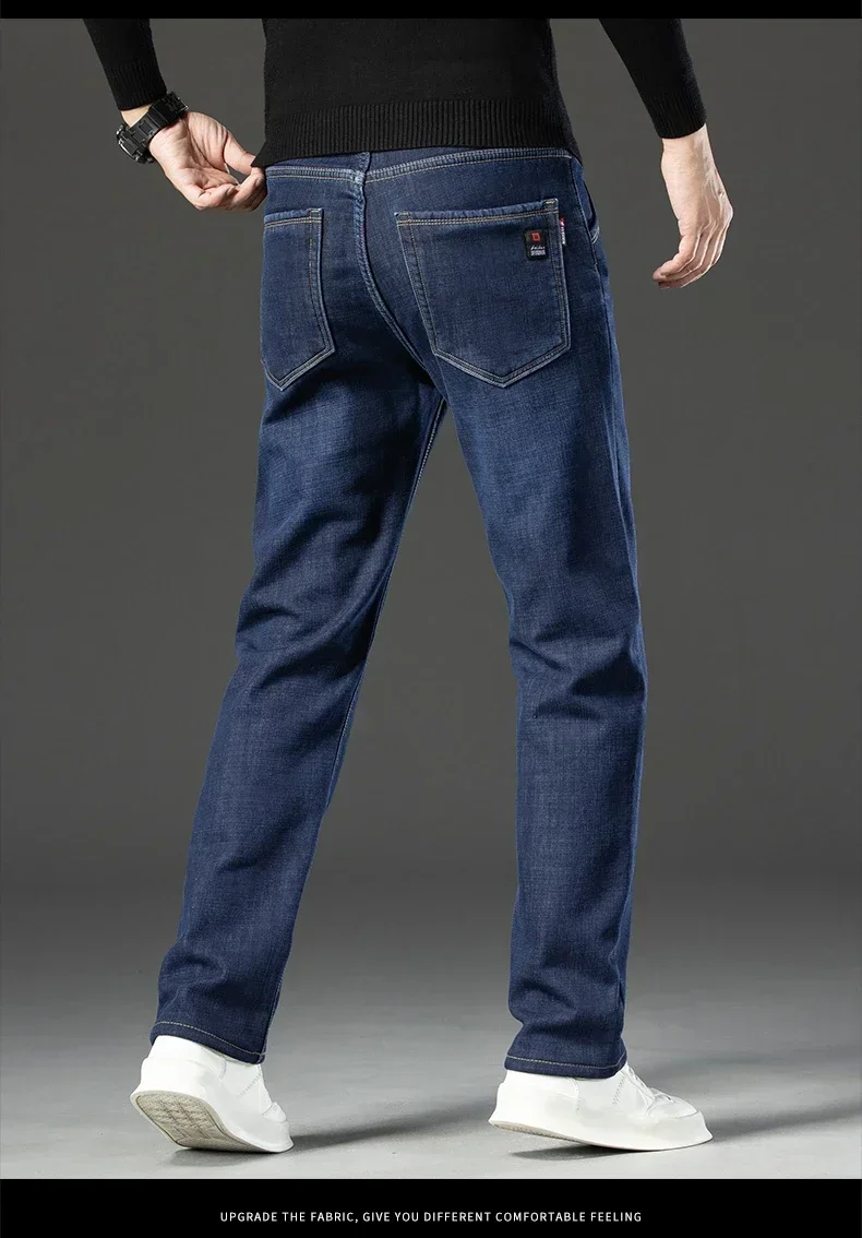 High Quality Men Fleece Jeans s Autumn Winter New Plus Size Thickened Warm Business Casual Slim Straight Denim Trouser Men Pants
