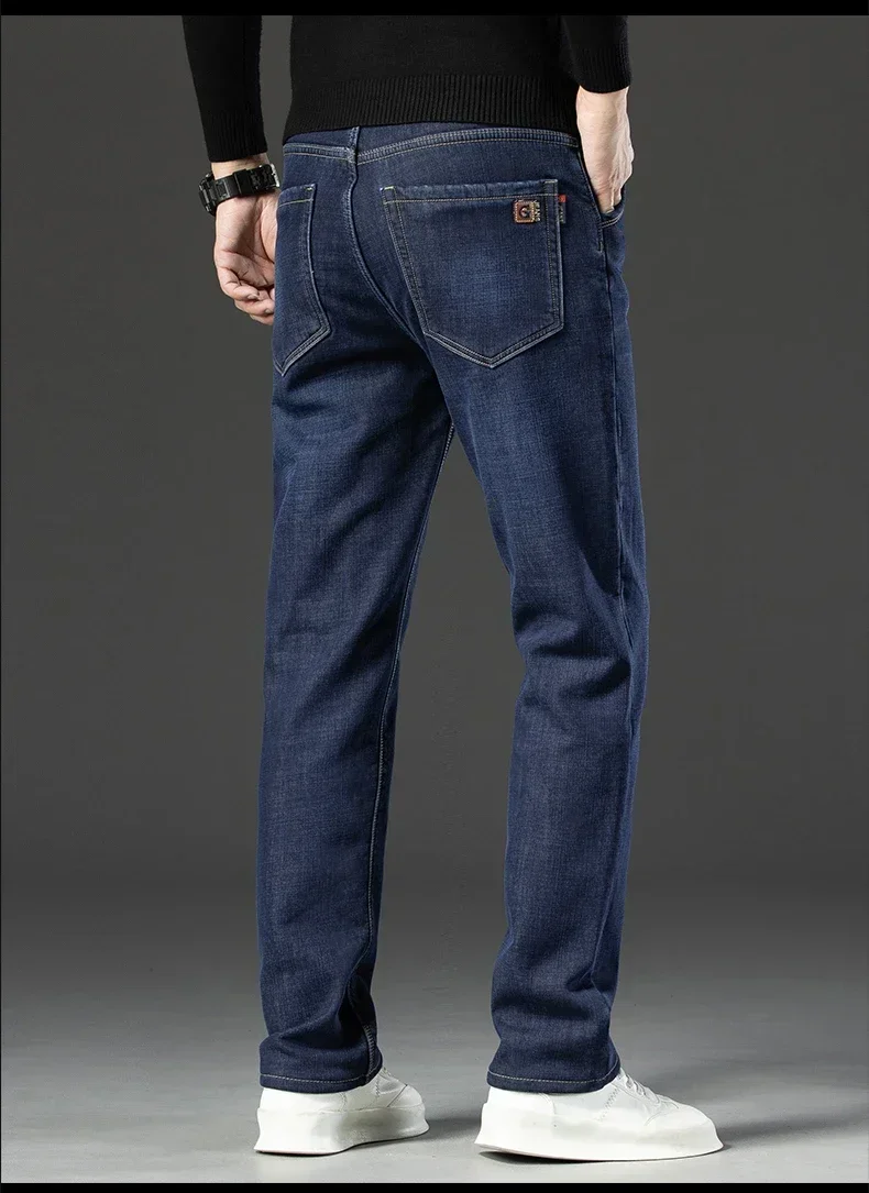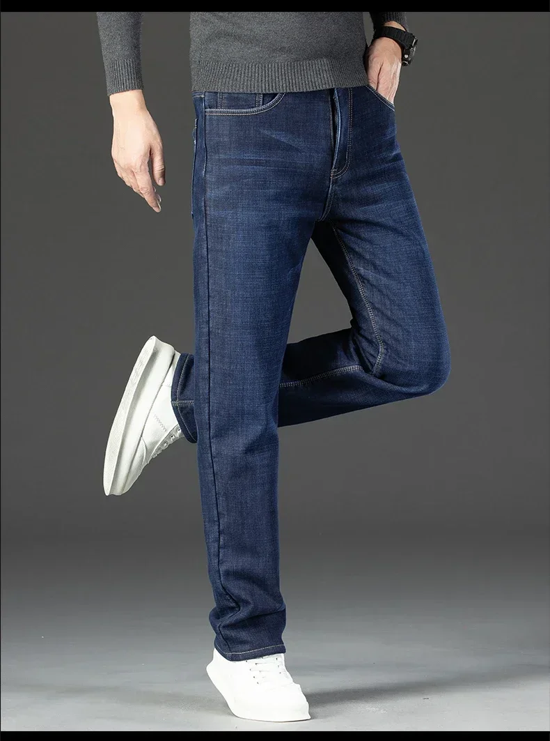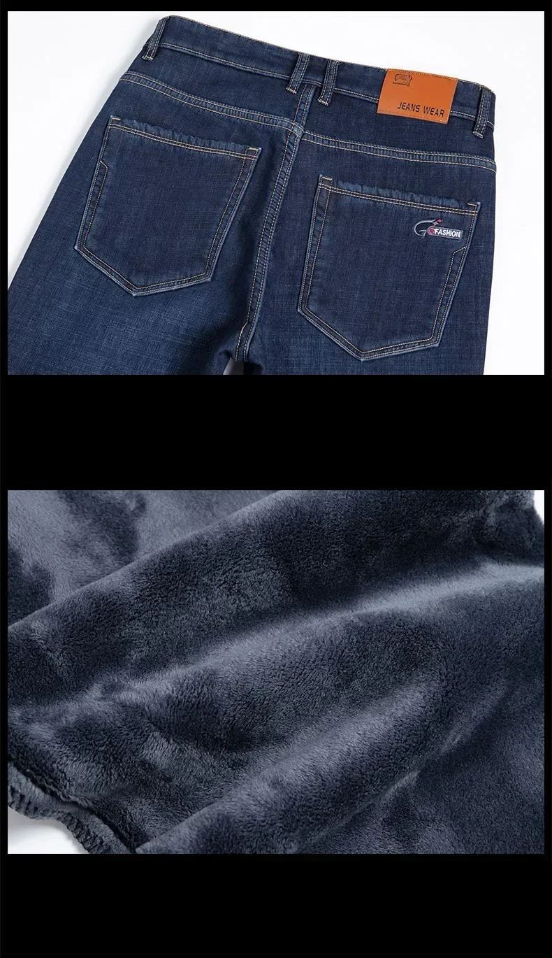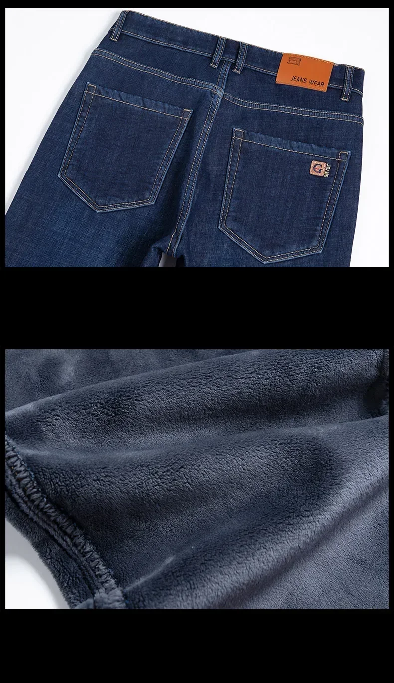 • High Quality Men Fleece Jeans s Autumn Winter New Plus Size Thickened Warm Business Casual Slim Straight Denim Trouser Men Pants