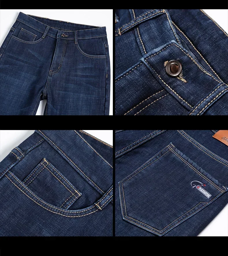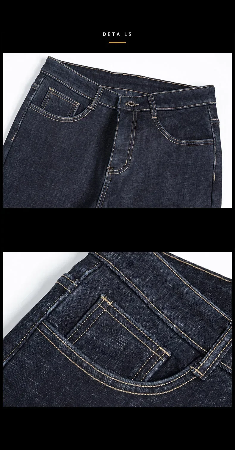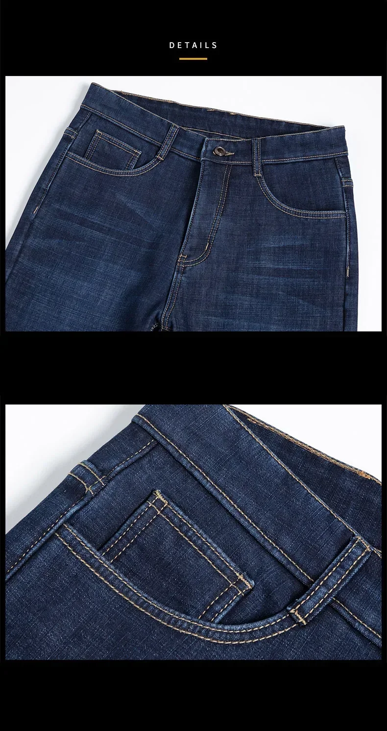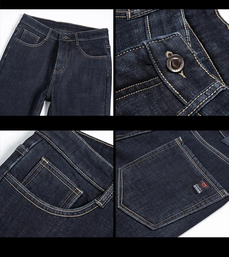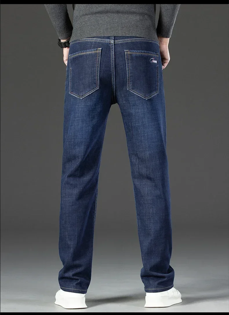 • High Quality Men Fleece Jeans s Autumn Winter New Plus Size Thickened Warm Business Casual Slim Straight Denim Trouser Men Pants