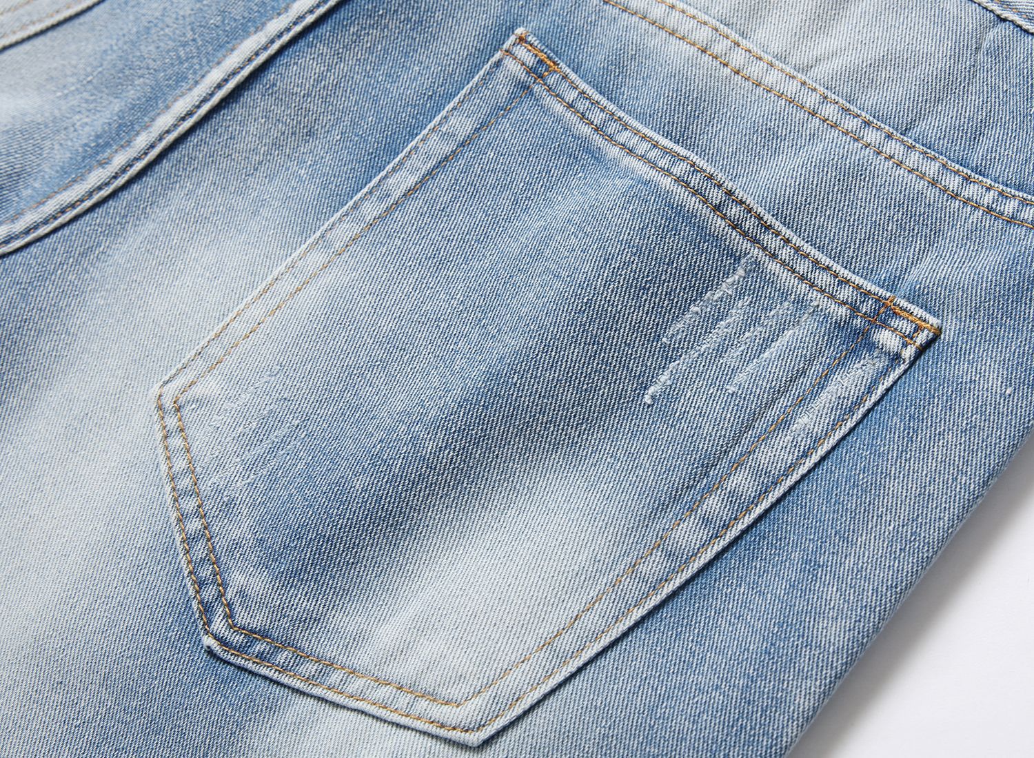 Men Light Blue Denim Shorts New Summer Male Holes Short Jeans Man Fashion Ripped Jeans Shorts Straight Fit Denim Shorts Size 42