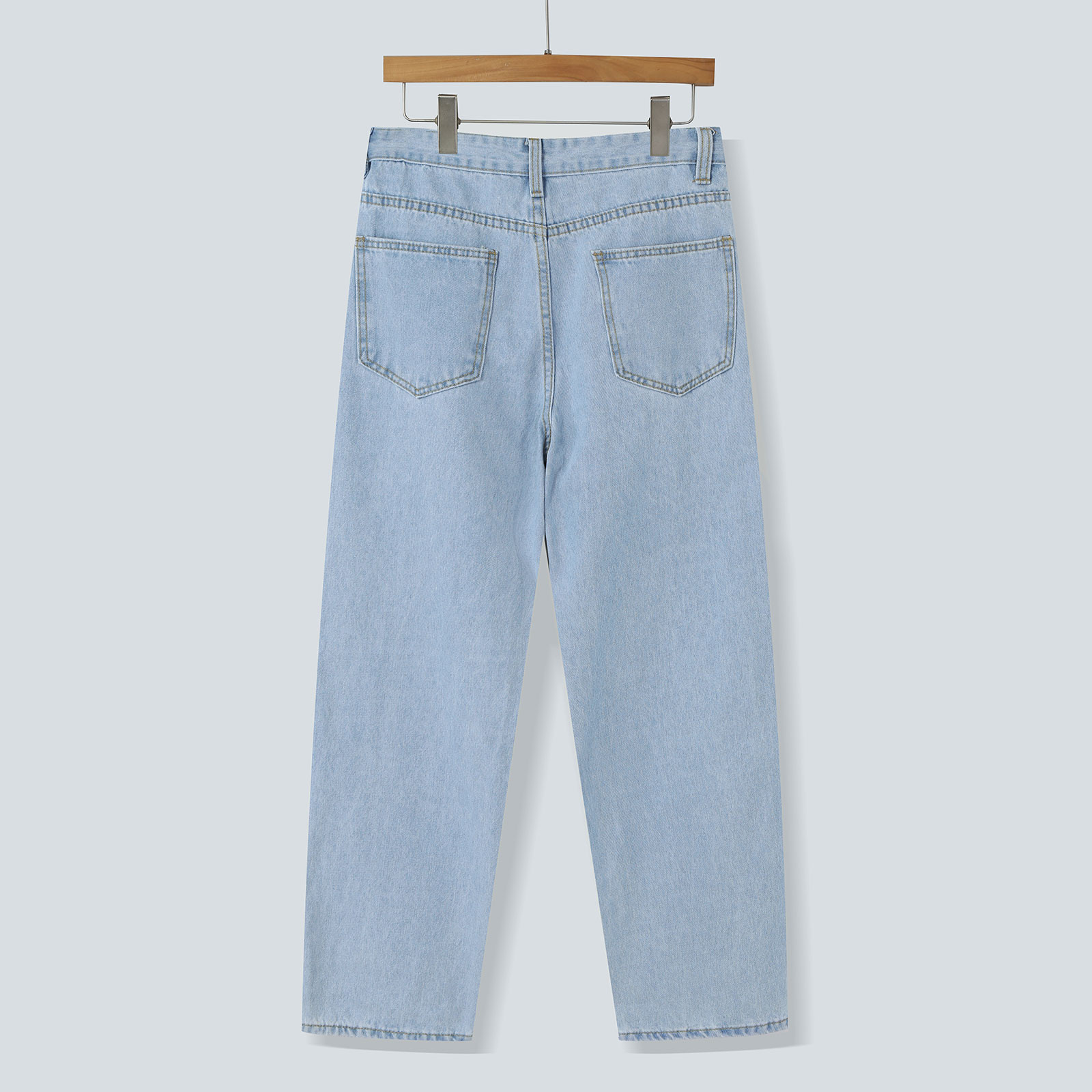 • Men'S Fashion Denim Trouser Cotton Hole Straight Pocket Distressed Jeans Pants Stylish Classic Jeans High Street Ins Trendy