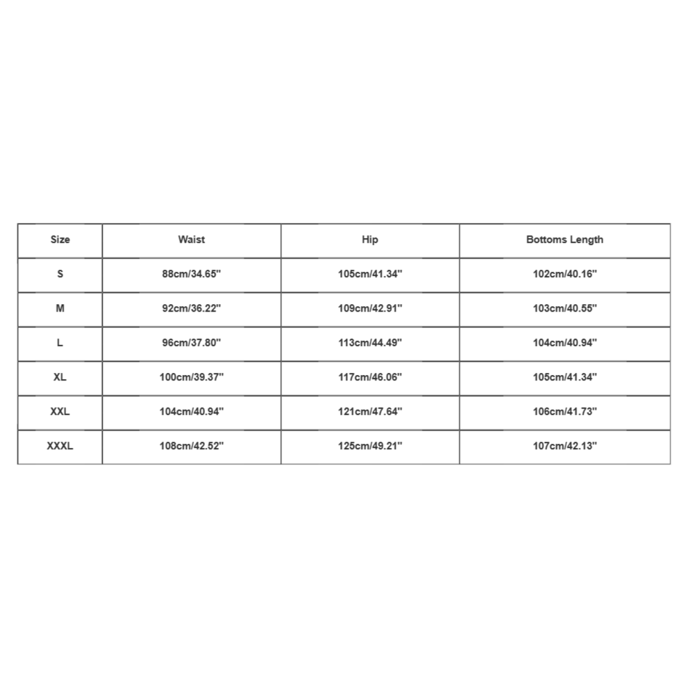 Size:XXXL | Waist:108cm/42.52'' | Hip:125cm/49.21'' | Bottoms Length:107cm/42.13'' |