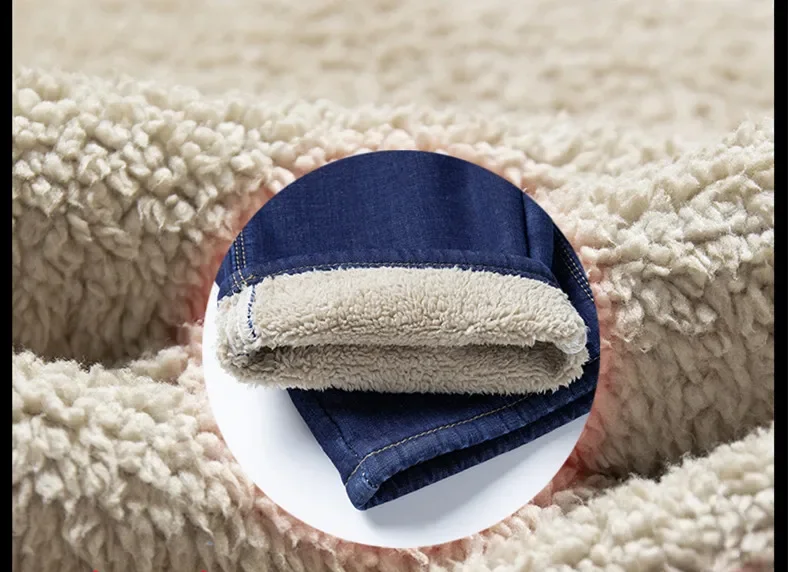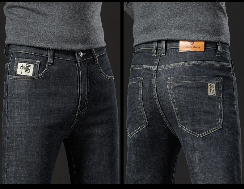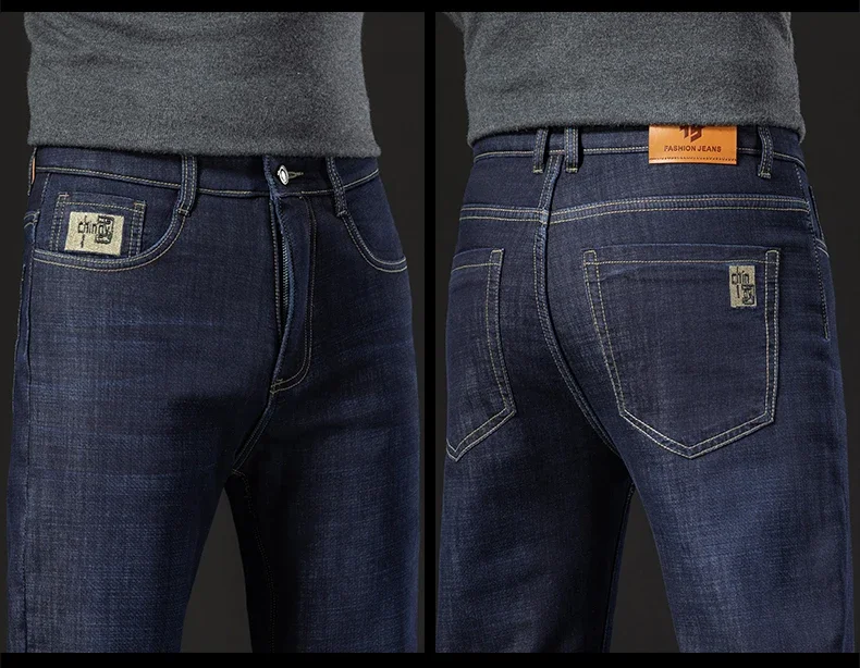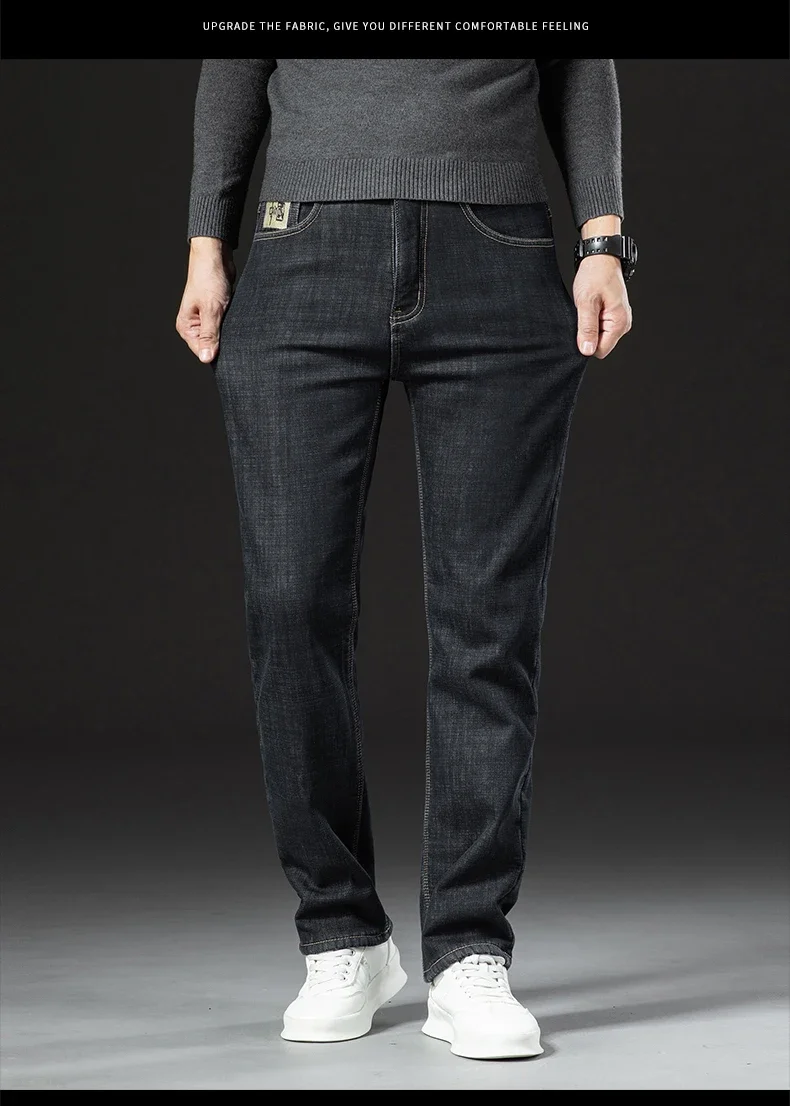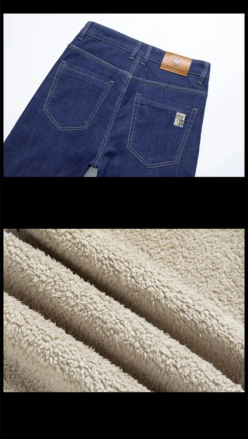 • New Classic Men's Business Casual Velvet Jeans Winter Chinese Embroidery Straight Loose Warm Thick Pants
