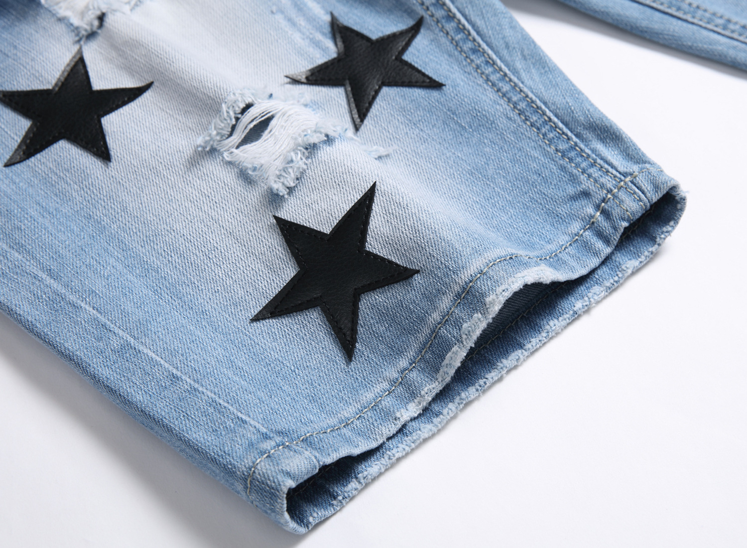 • New Summer Men Light Blue Denim Shorts Holes Short Jeans Male Fashion Ripped Jeans Shorts Straight Fit Denim Shorts Size 42