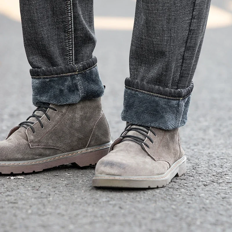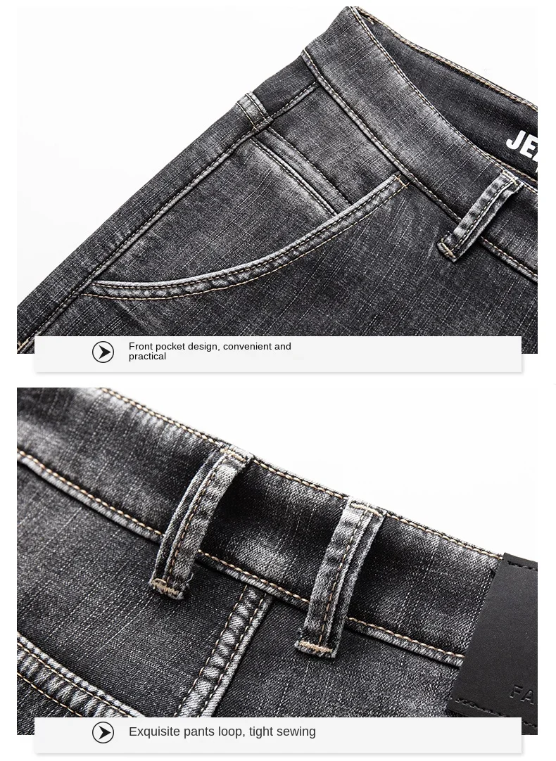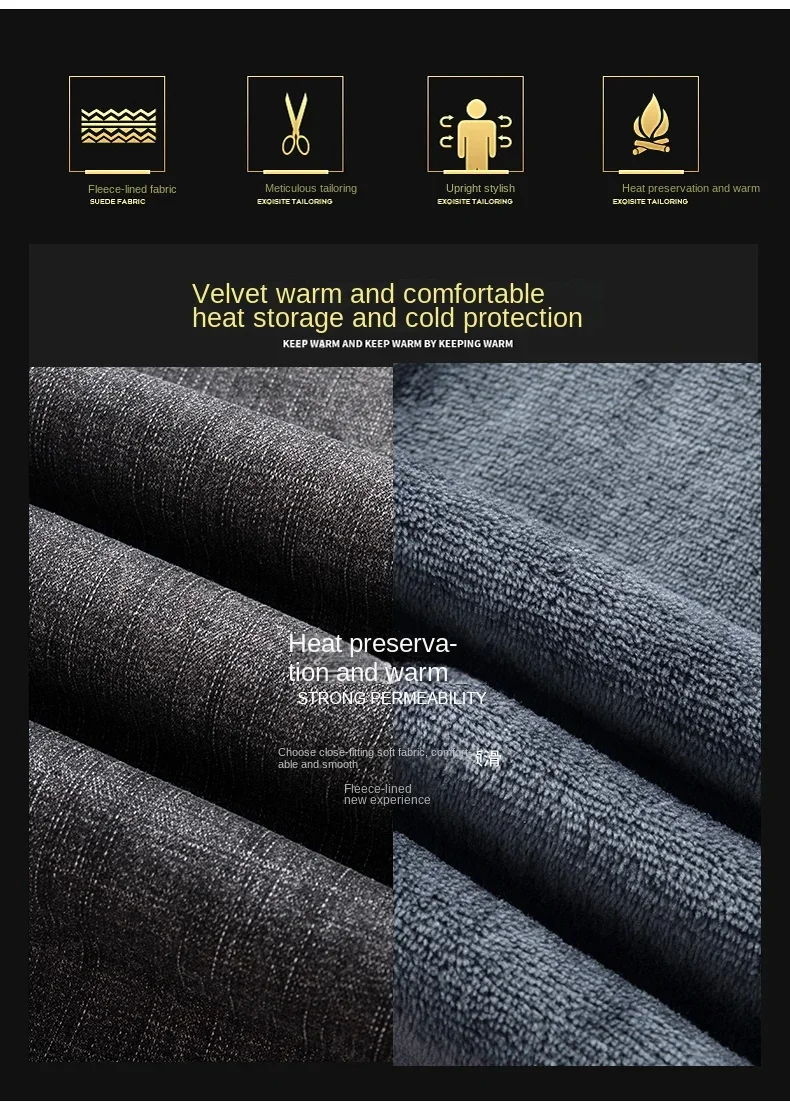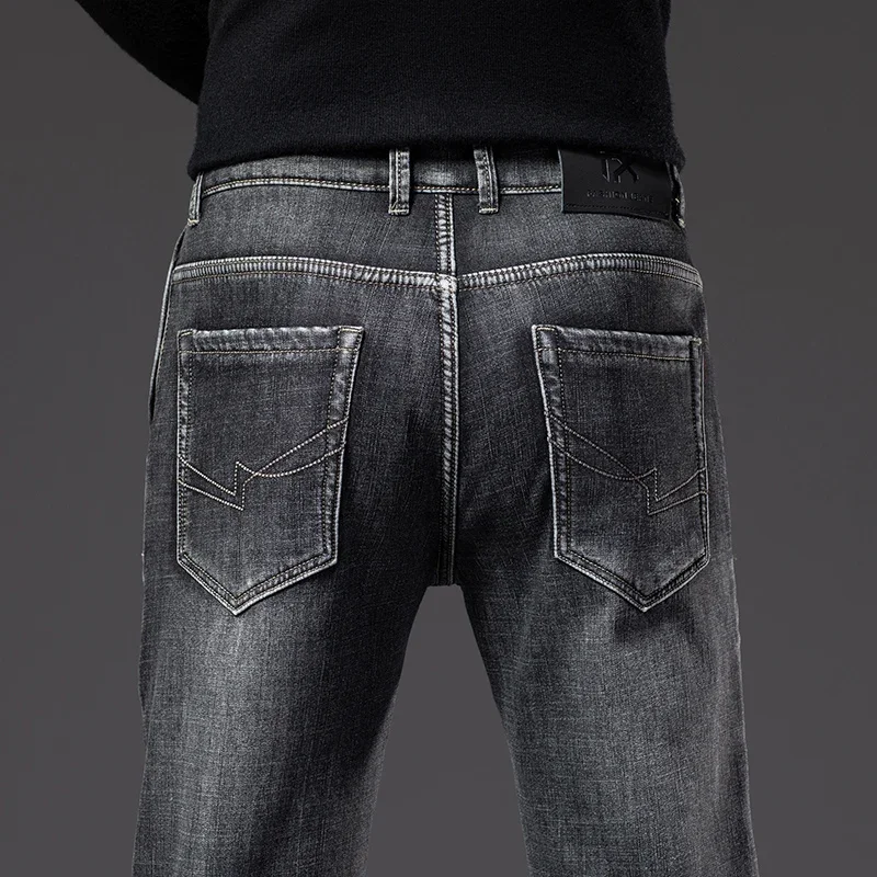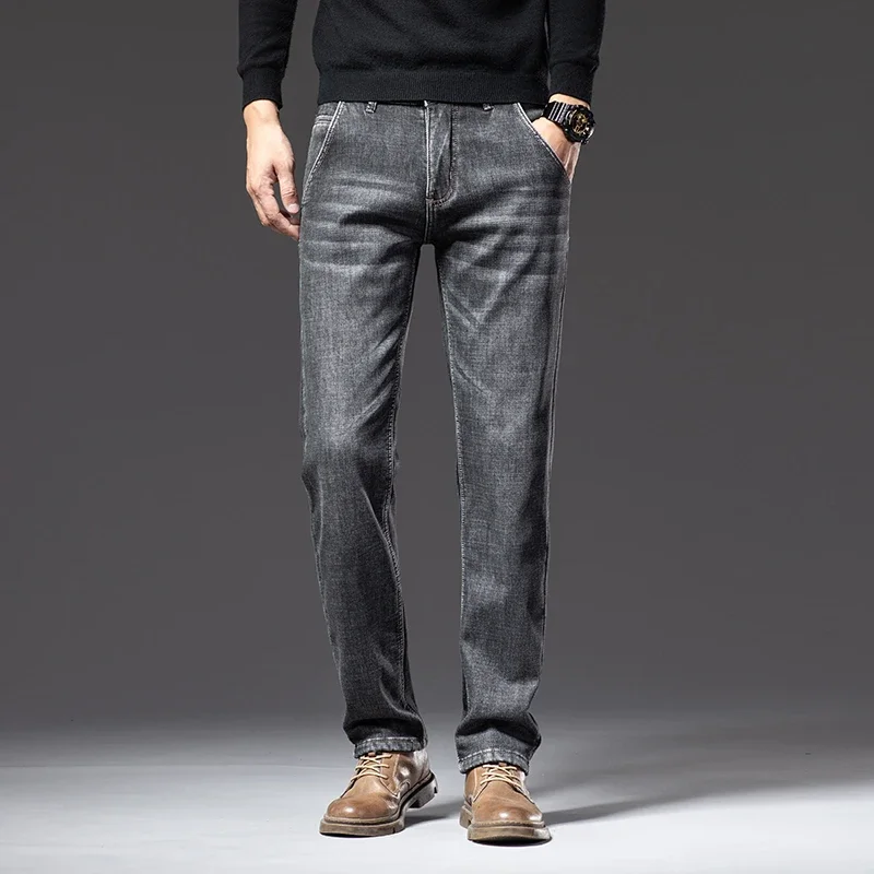 • Winter Brand Fleece Thick Warm Fit Straight Stretch Jeans Classic Fashion Casual Youth Men's Slim Jeans Black Gray Blue 2024