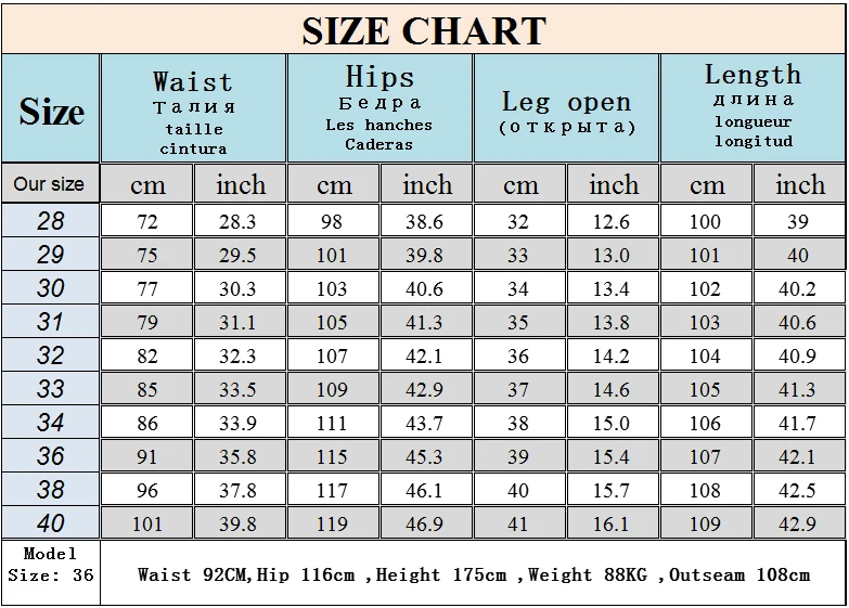 1. The manufacturer is a China size,32 Size ≈ 32 inches Waist Please tell us your height and weight, and we suggest a suitable size for you.
