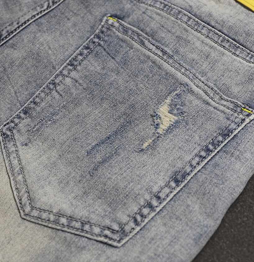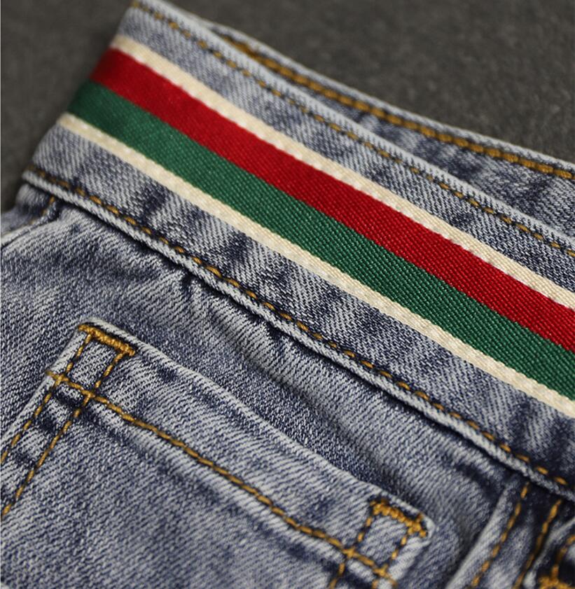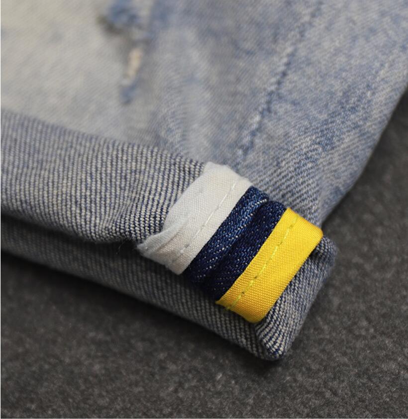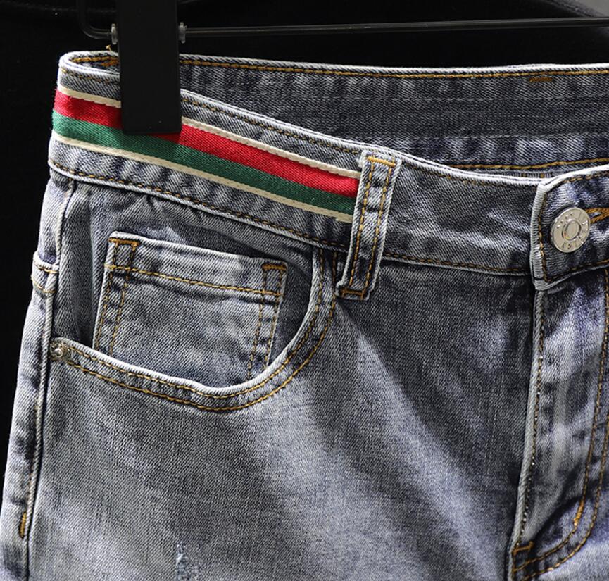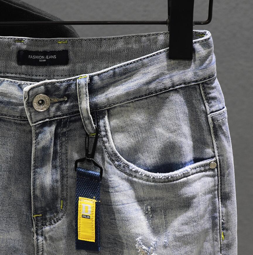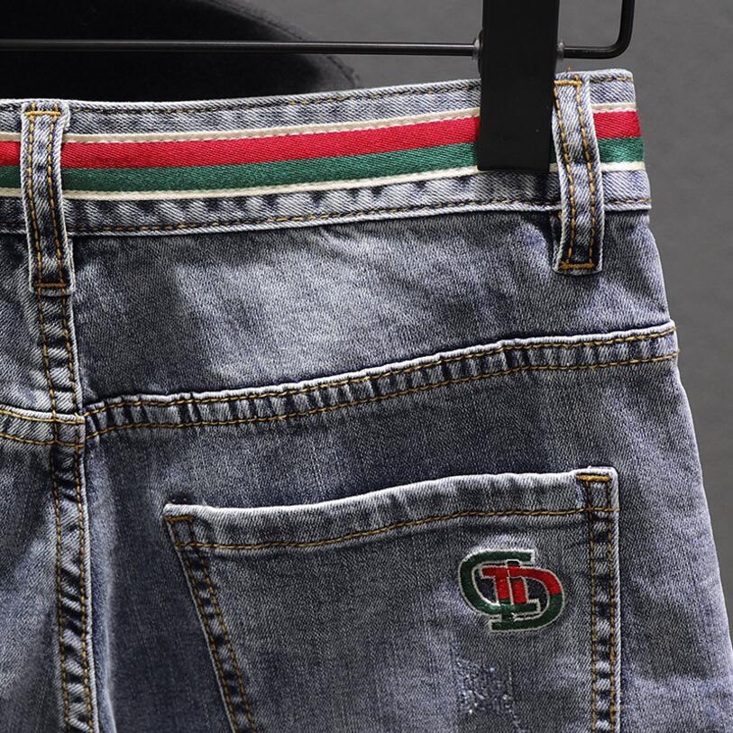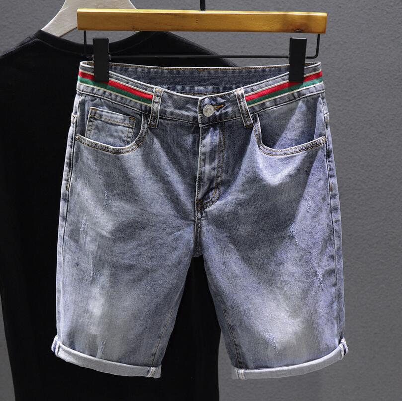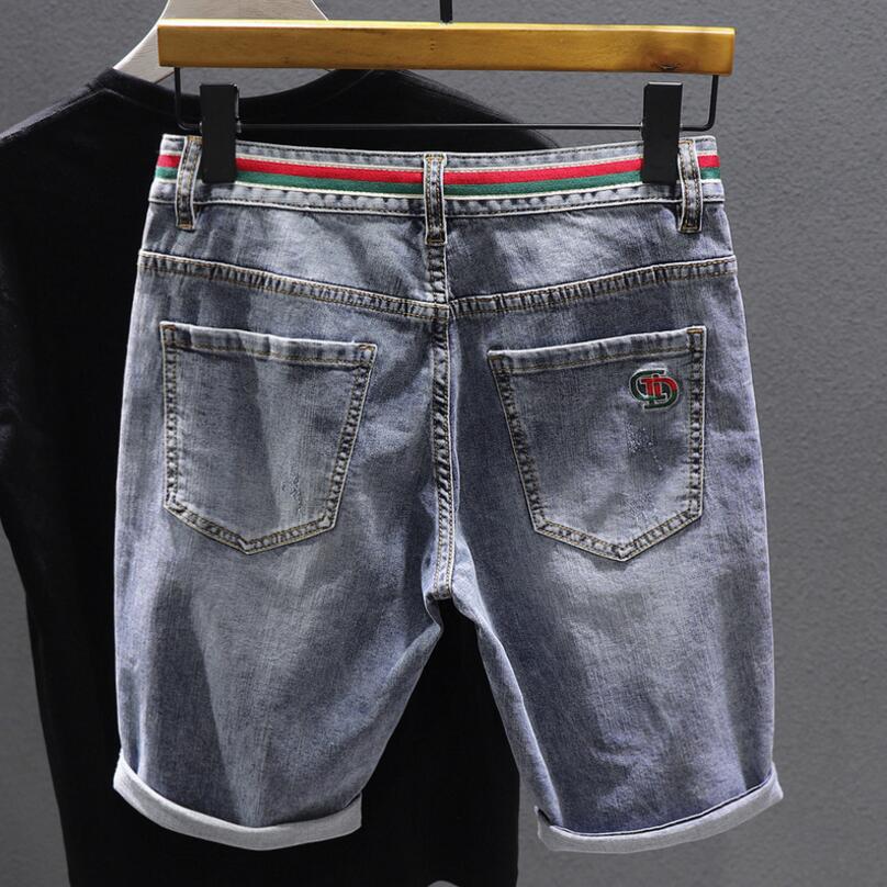 • Victoryssuper Men Blue Denim Shorts Jeans Stretch Elastic Denim Shorts Hight Quality Male Cotton Straight Fit Jeans Shorts Thin Holes Jeans