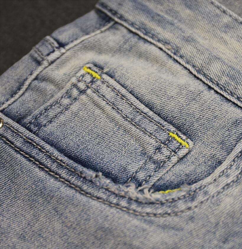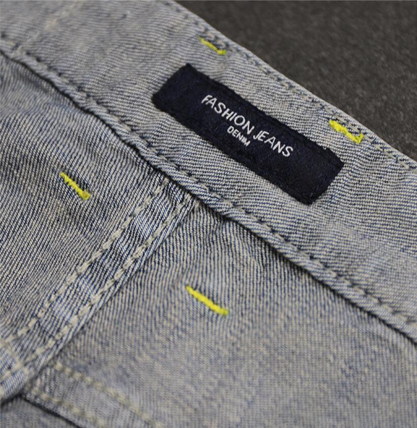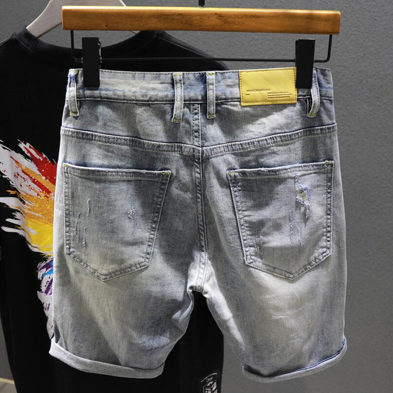 Victoryssuper Men Blue Denim Shorts Jeans Stretch Elastic Denim Shorts Hight Quality Male Cotton Straight Fit Jeans Shorts Thin Holes Jeans