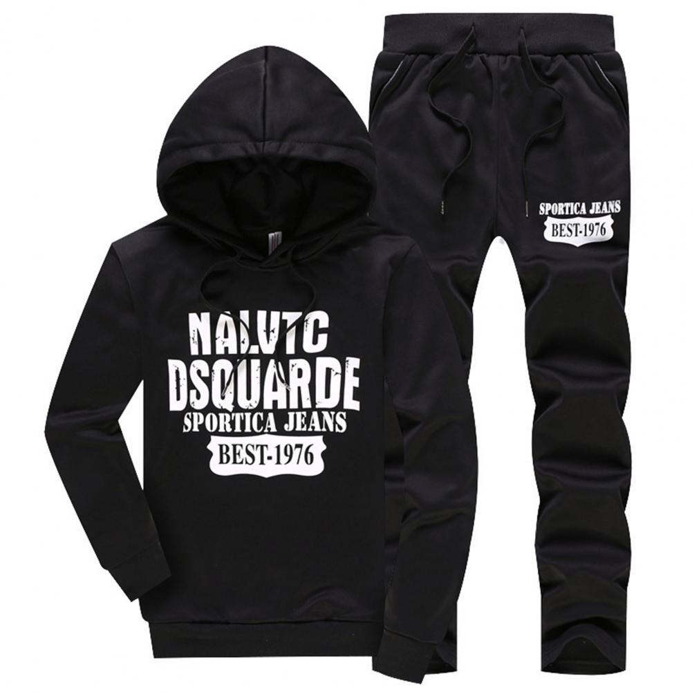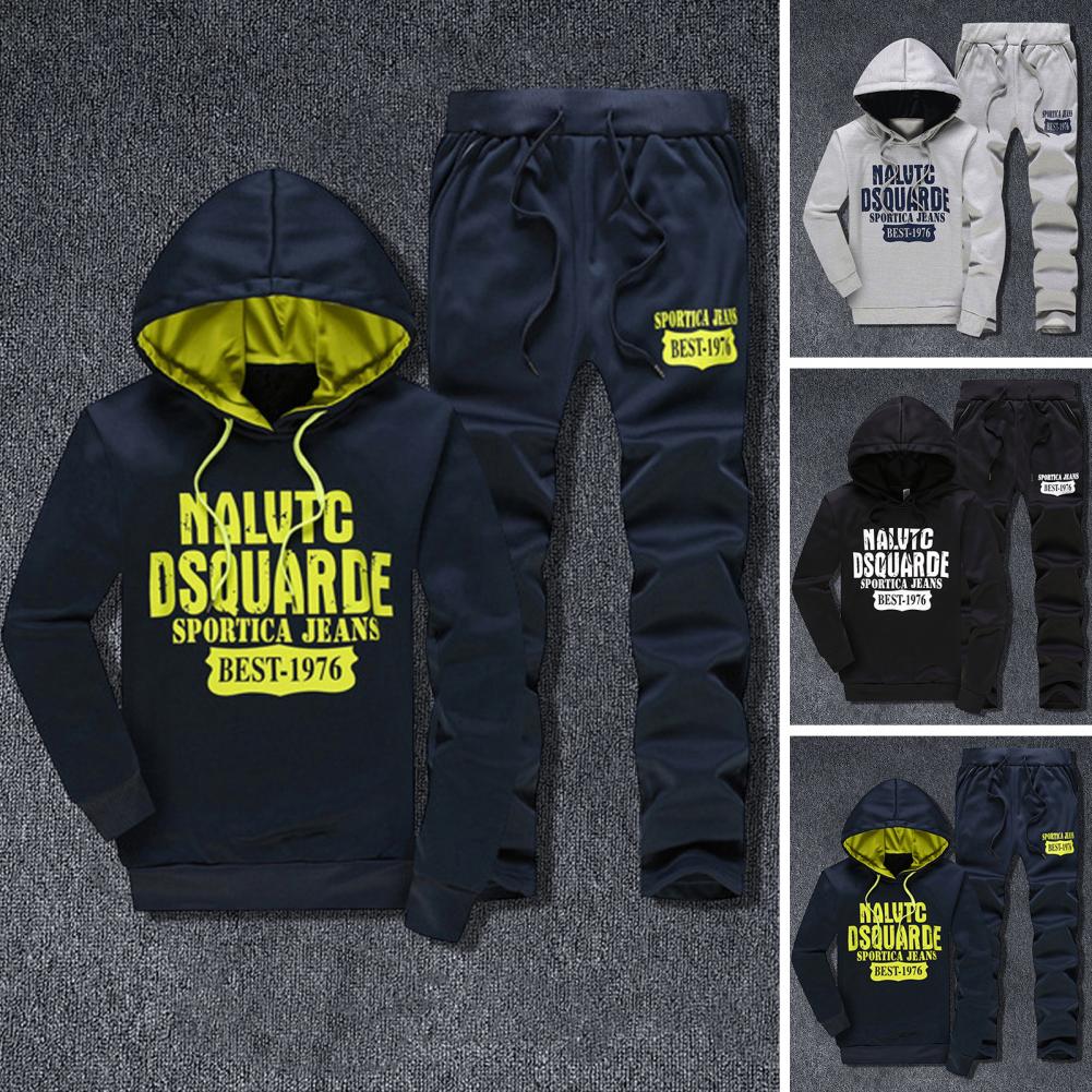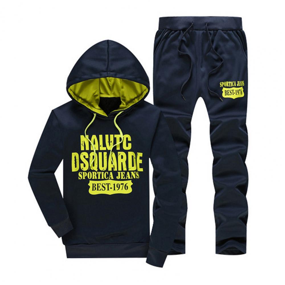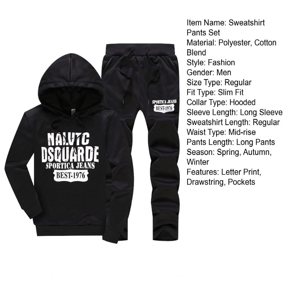 • 2Pcs/Set Long Sleeve Drawstring Elastic Waistband Pockets Sportswear Set Men Autumn Letter Print Slim Hooded Sweatshirt Pants Se