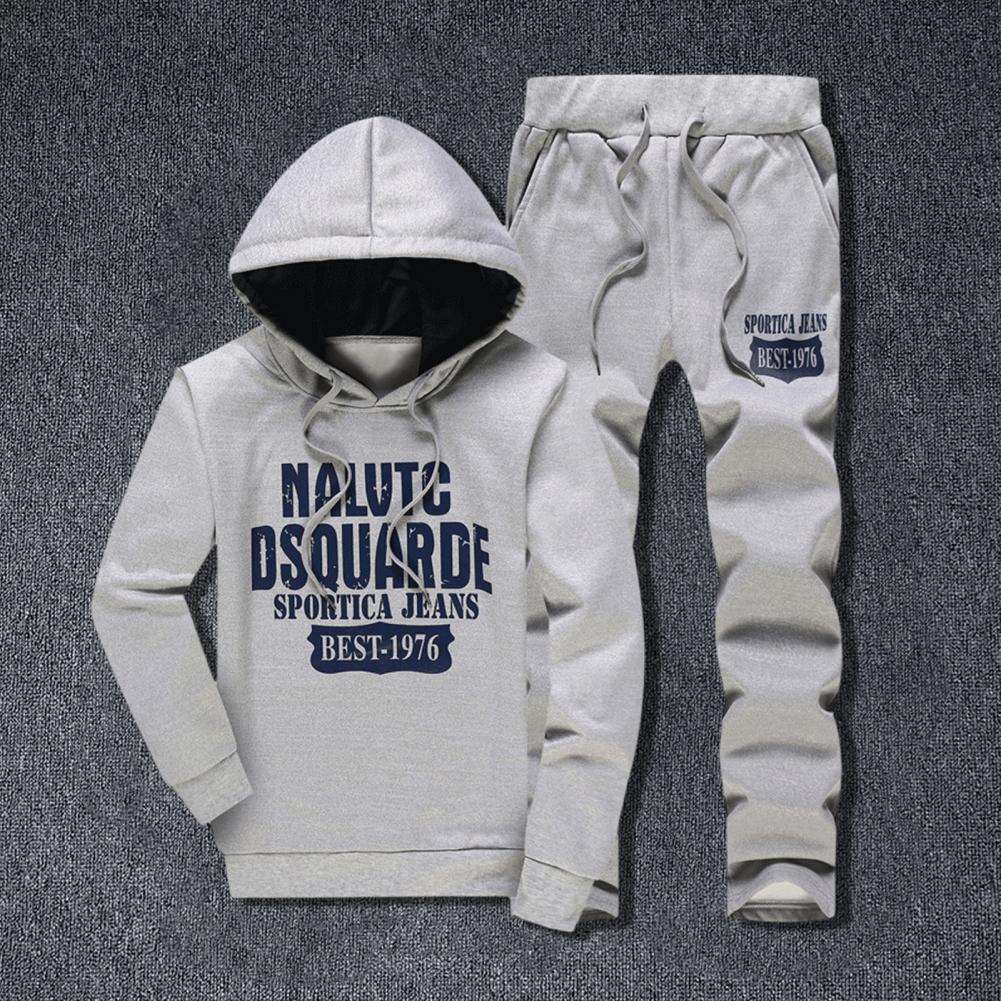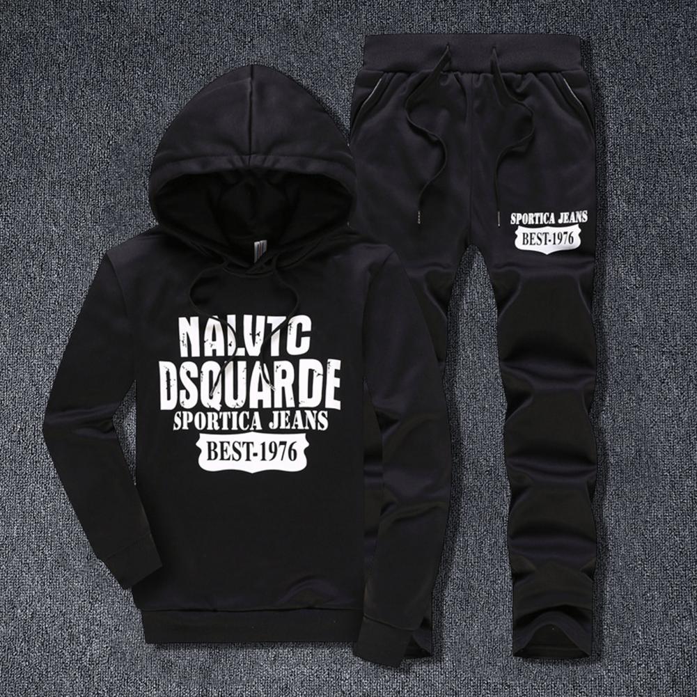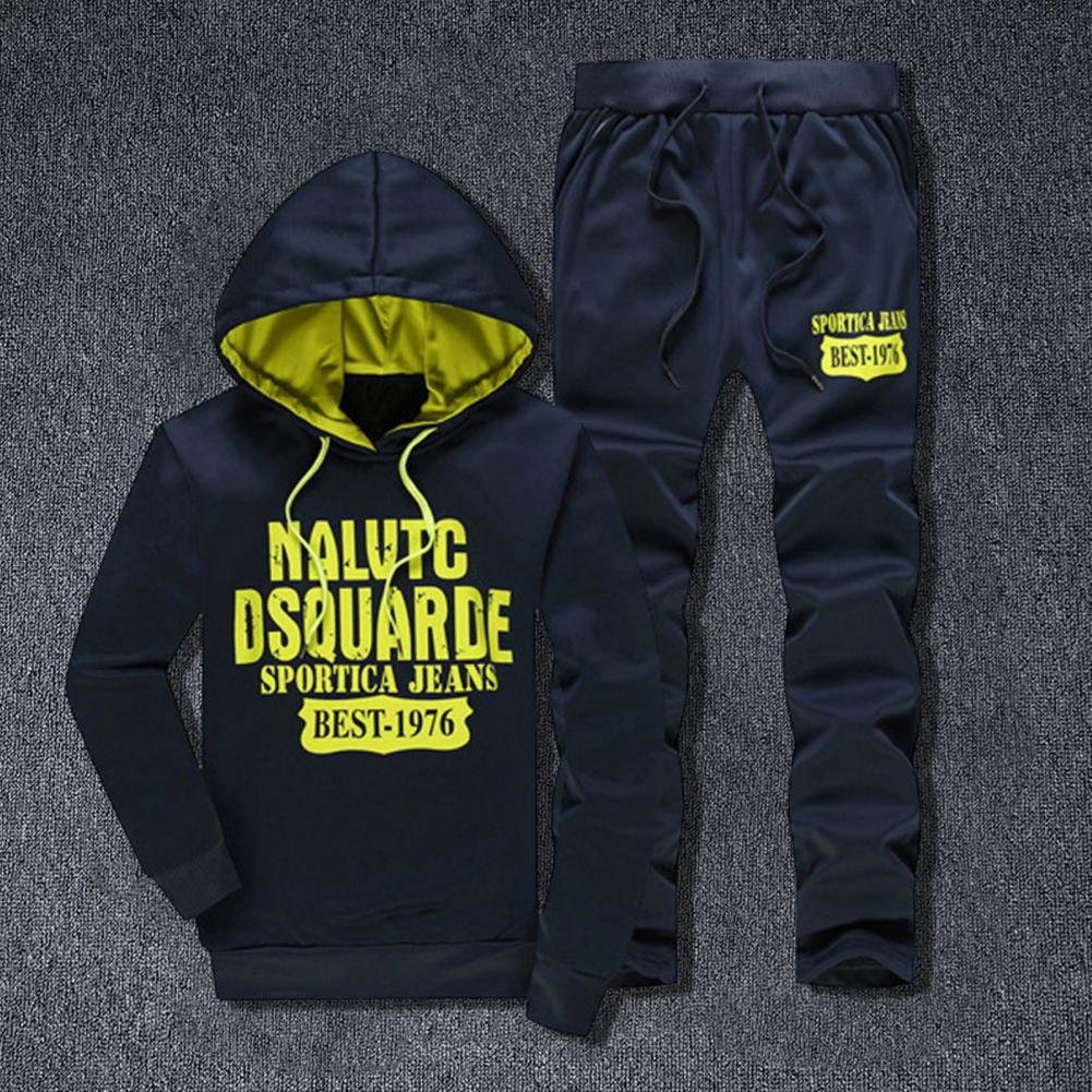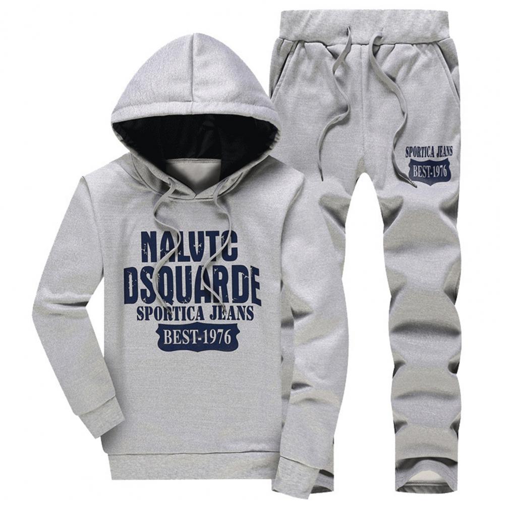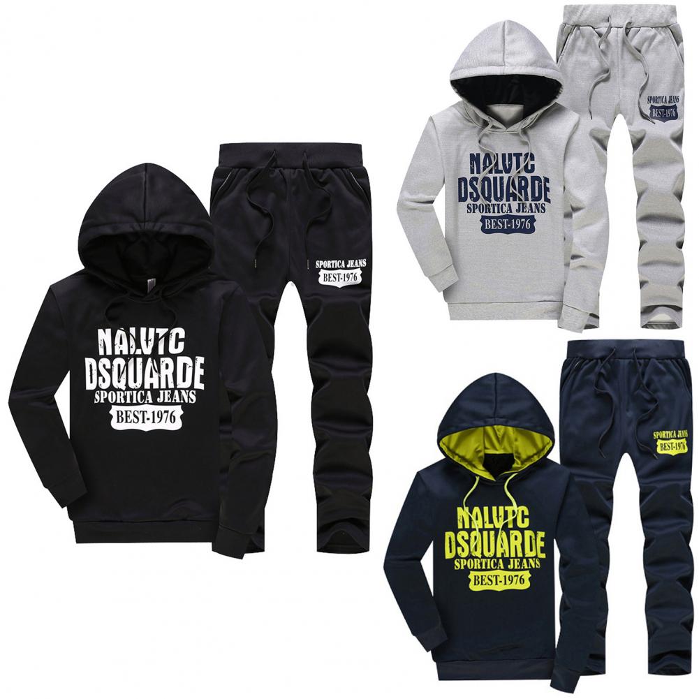 • 2Pcs/Set Long Sleeve Drawstring Elastic Waistband Pockets Sportswear Set Men Autumn Letter Print Slim Hooded Sweatshirt Pants Se