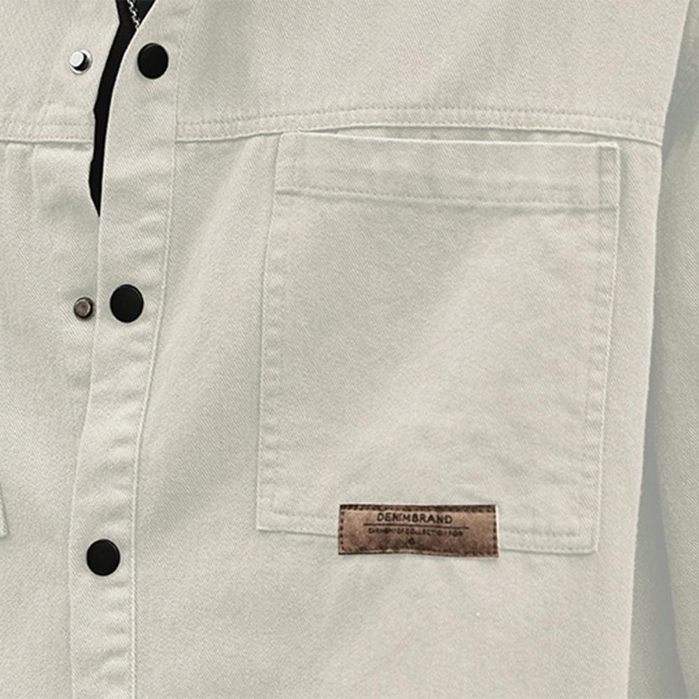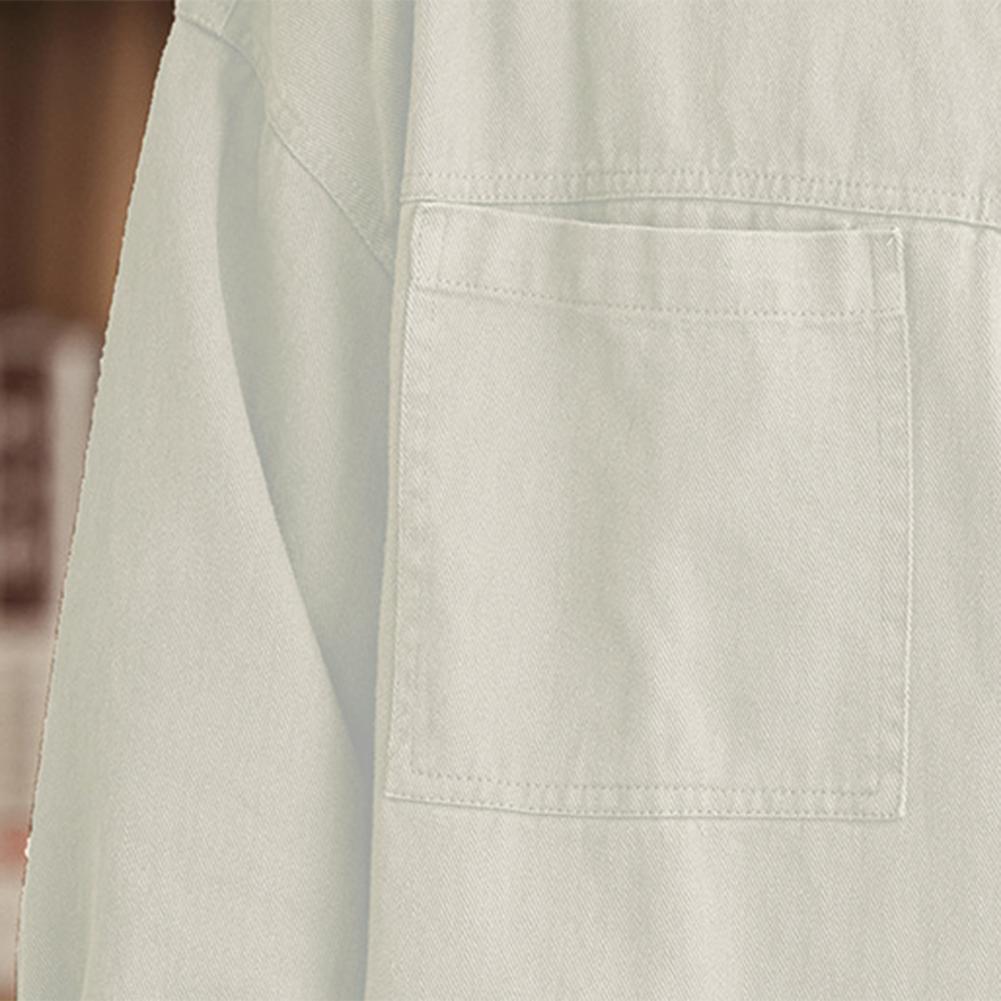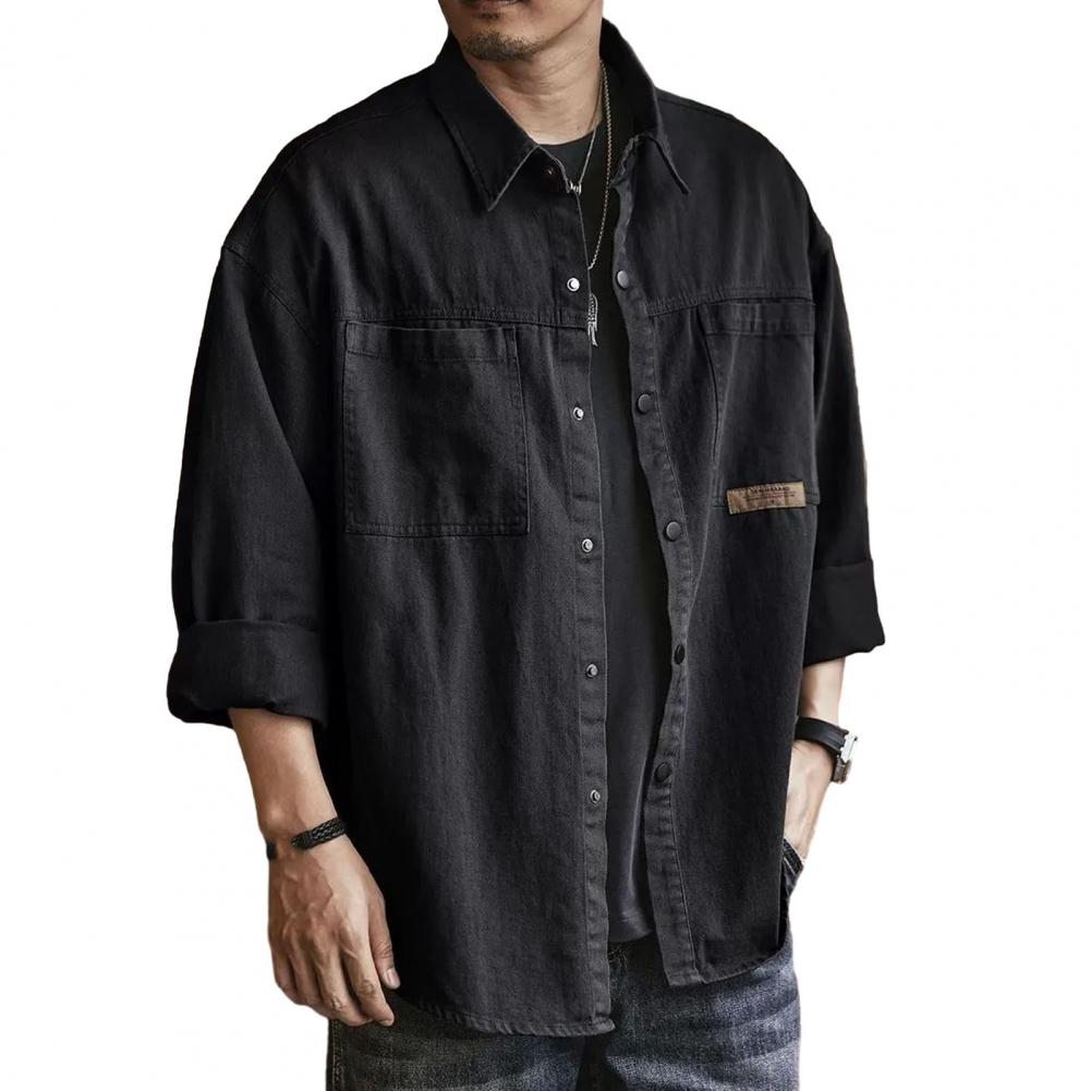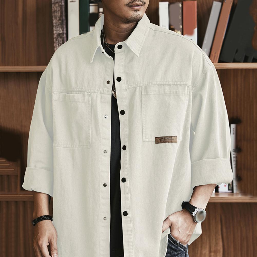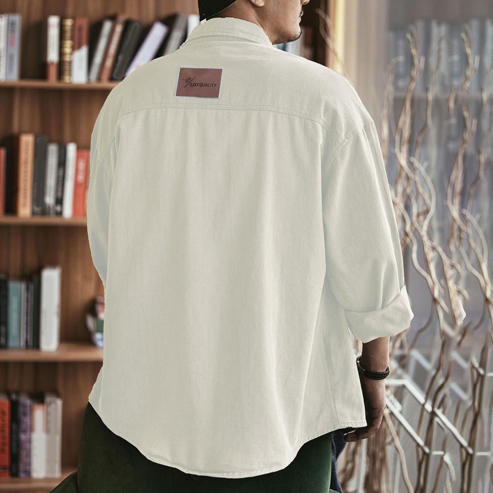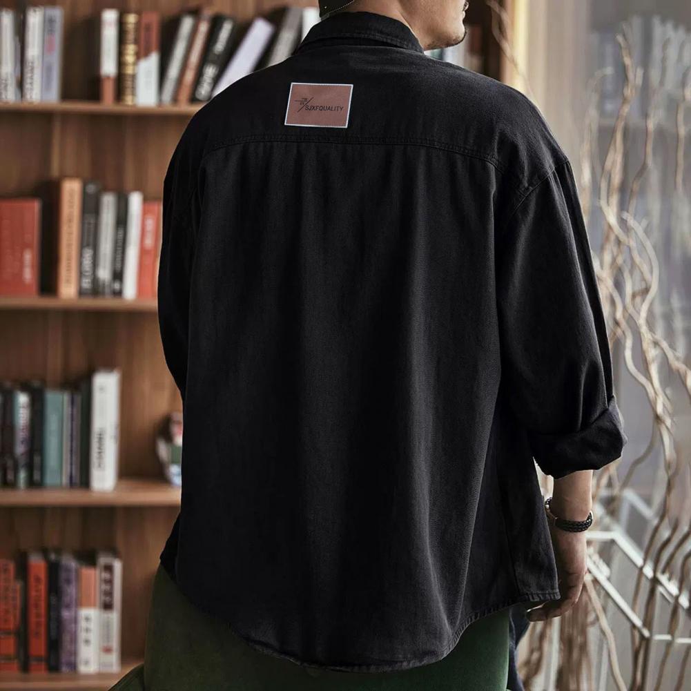 Men Spring Fall Shirt Turn-down Collar Loose Single-breasted Long Sleeve Solid Color Casual Cardigan Buttons Patch Pockets Men Daily Top