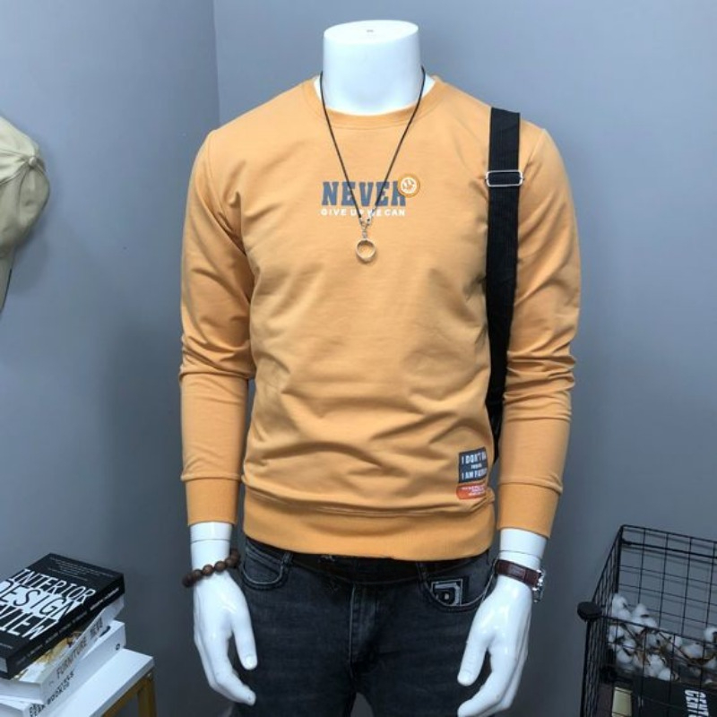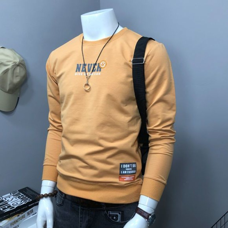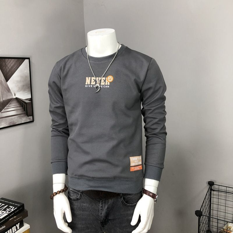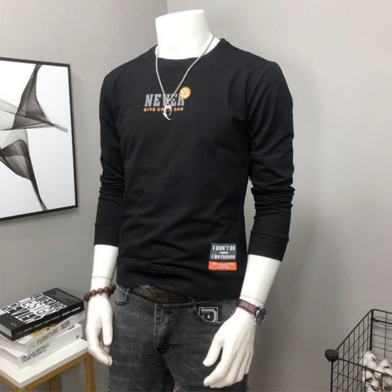 • Round Neck Sweatshirt 100c/o Cotton Tight Slim Fit Male Pullover Printed Men's T-shirts Black High Brand Tshirt Elasticity Normal