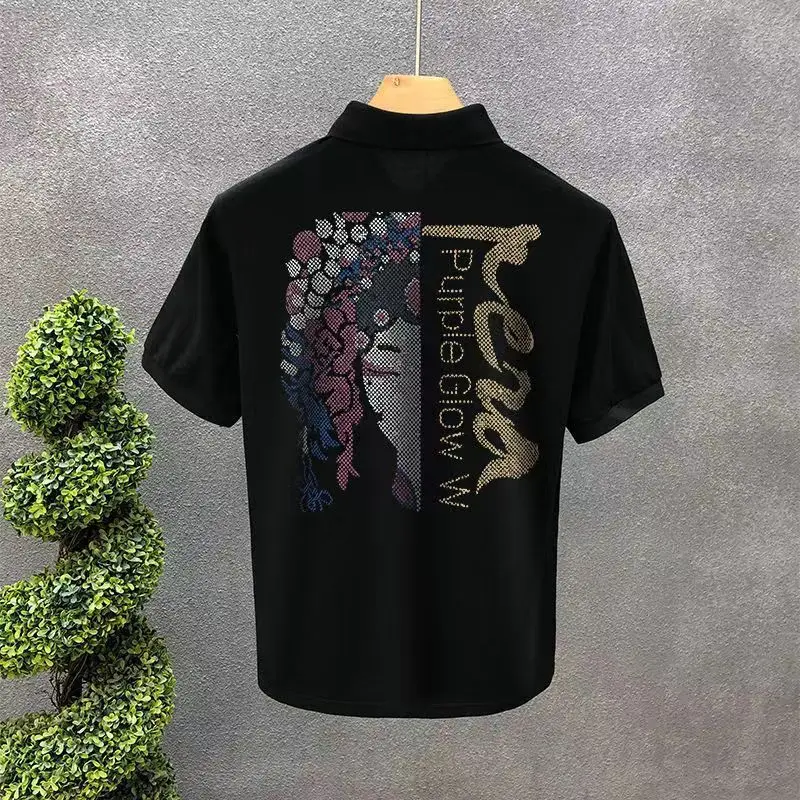 • Tops Graphic Mens T-shirt Black Polo Shirts Anime Male with Collar Tee Loose Summer Cheap Ordinary Men's Clothing Comfortable