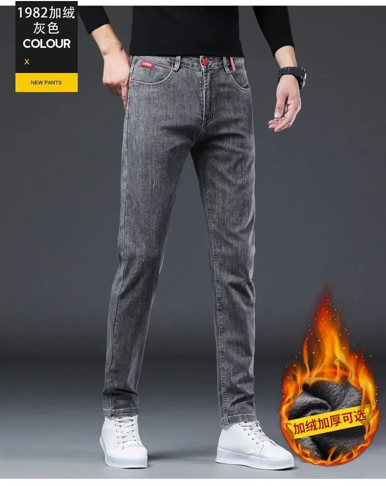 2024 Autumn and Winter New Classic Fashion Trend Plus Fleece Stretch Shorts Men's Casual Comfort Warm High Quality Jeans 27-38