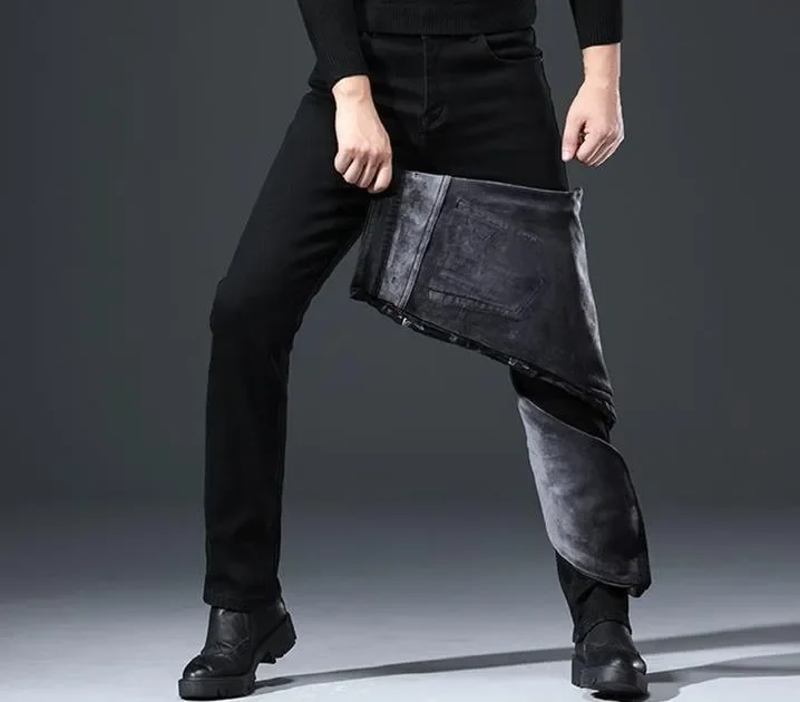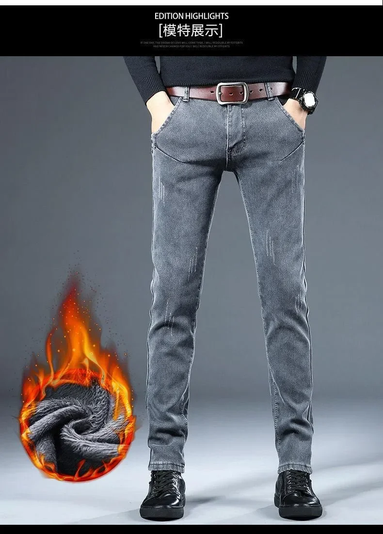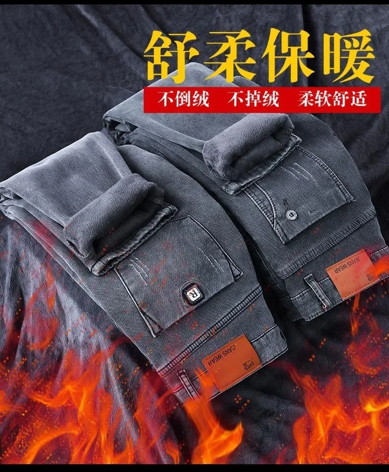 • 2024 Autumn and Winter New Classic Fashion Trend Plus Fleece Stretch Shorts Men's Casual Comfort Warm High Quality Jeans 27-38