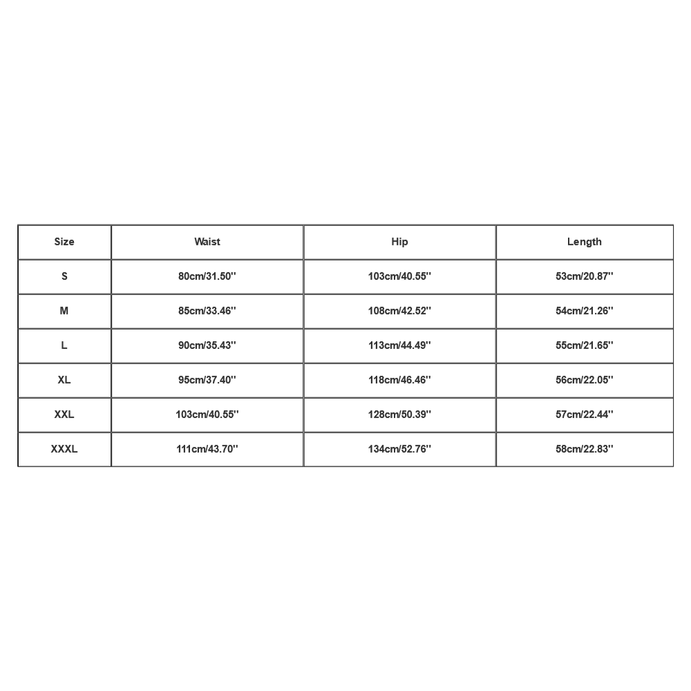 Size:XXXL Waist:111cm/43.70'' Hip:134cm/52.76'' Length:58cm/22.83''