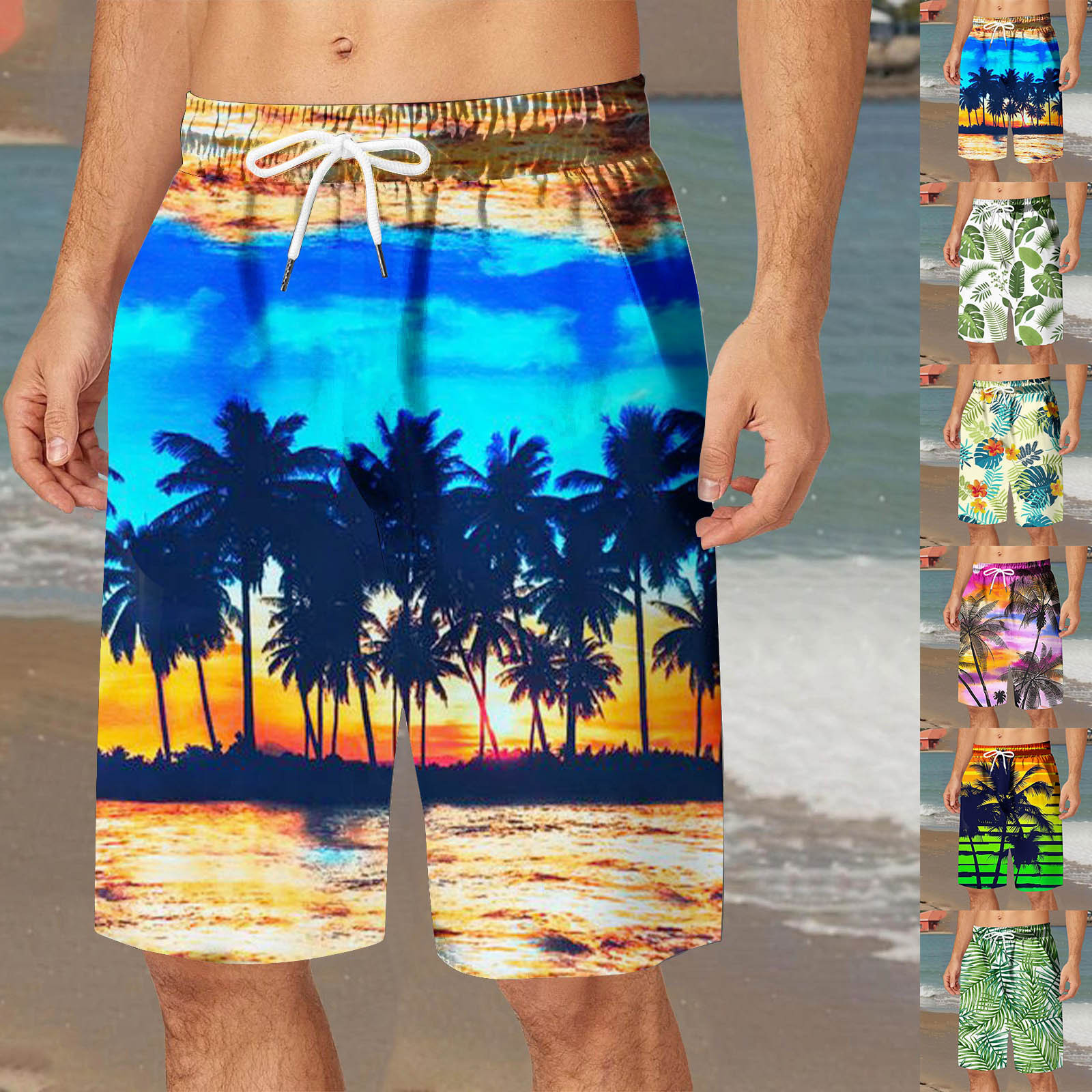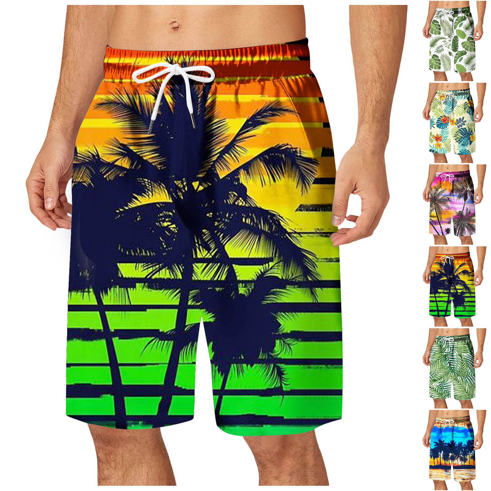 【Colorful Patterns】Beach shorts with various patterns, such as leaves, flowers, flamingo, pineapple, stripes, sea wave, and so on. Wearing them just like being on an island.