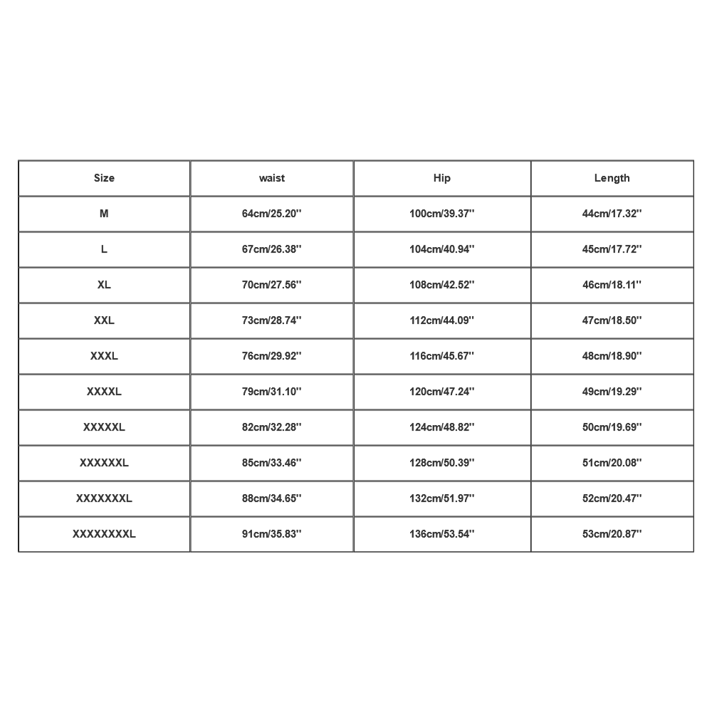 Size:XXXXXL | waist:82cm/32.28'' | Hip:124cm/48.82'' | Length:50cm/19.69'' |