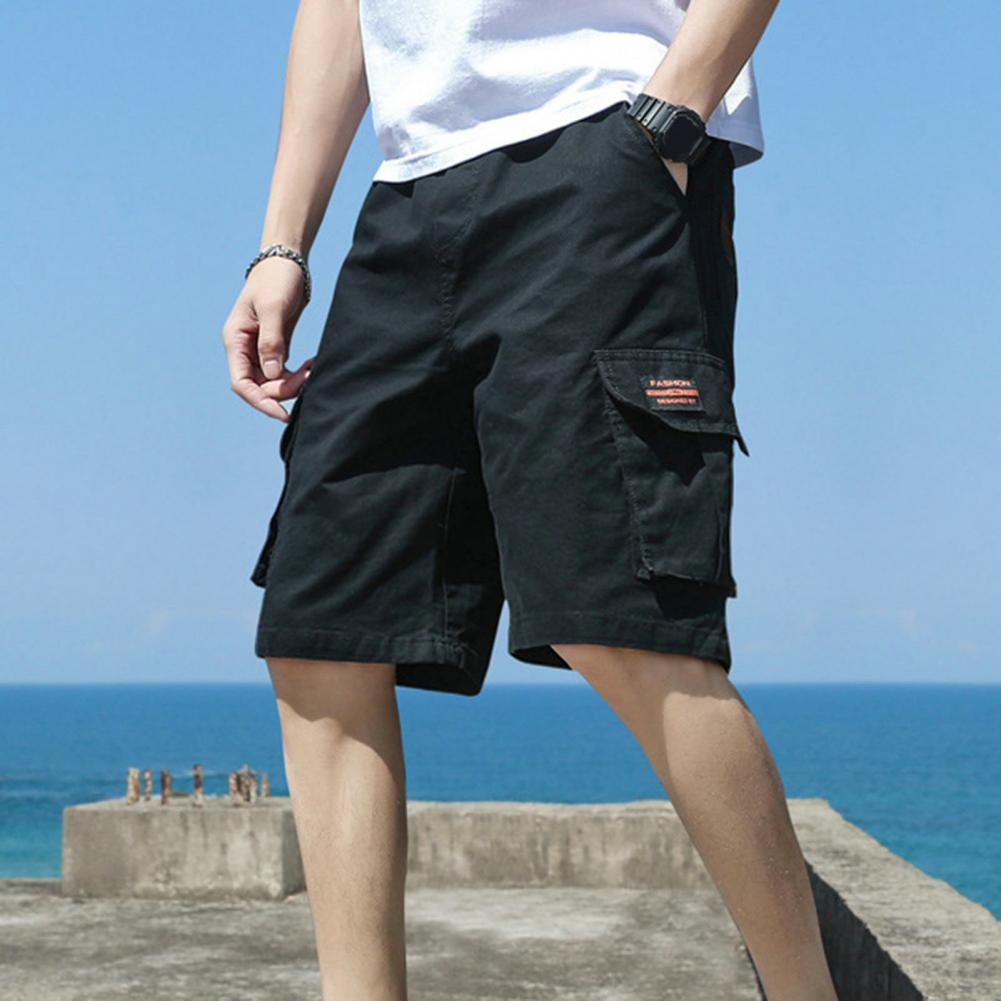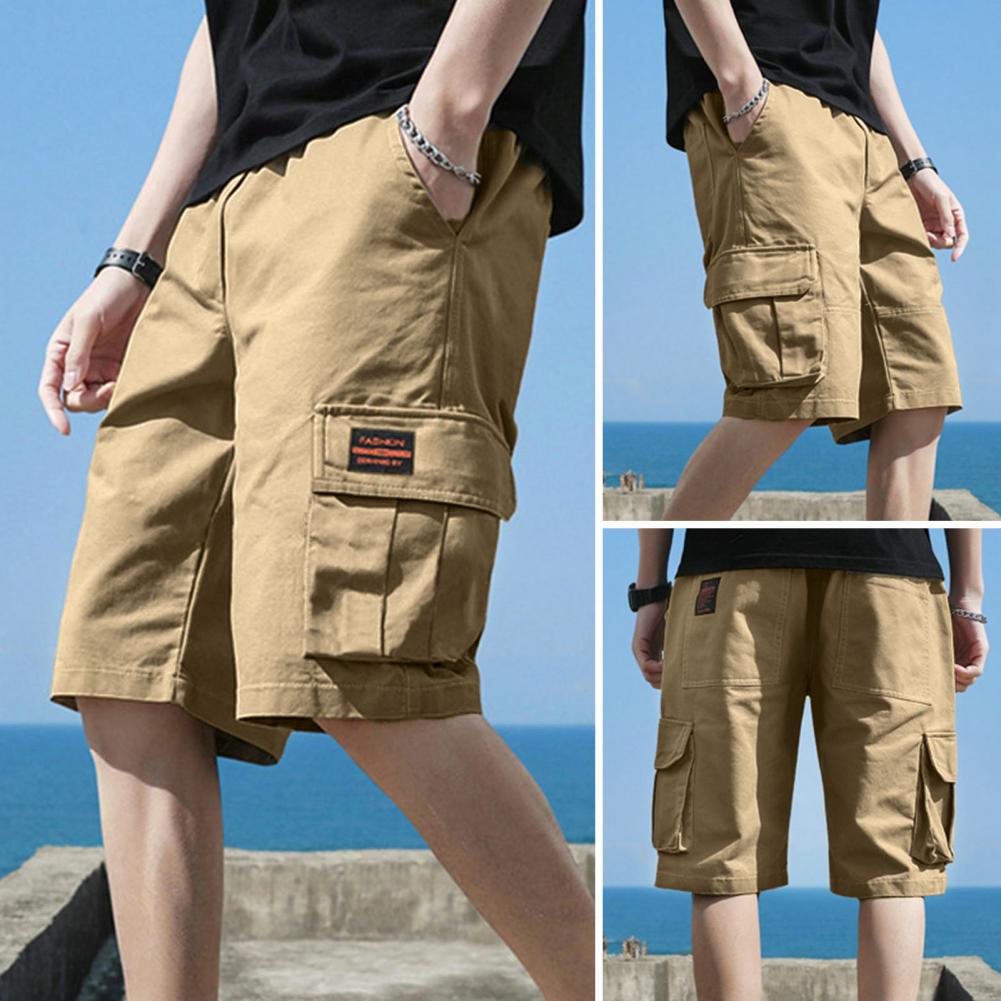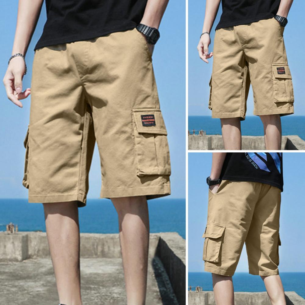 Men Cargo Shorts Loose Straight Multi Pockets Elastic Waist Casual Knee Length Deep Crotch Breathable Men Summer Sport Streetwear Shorts
