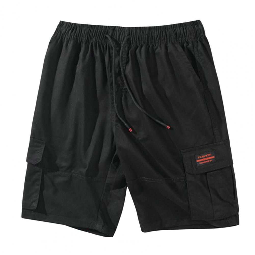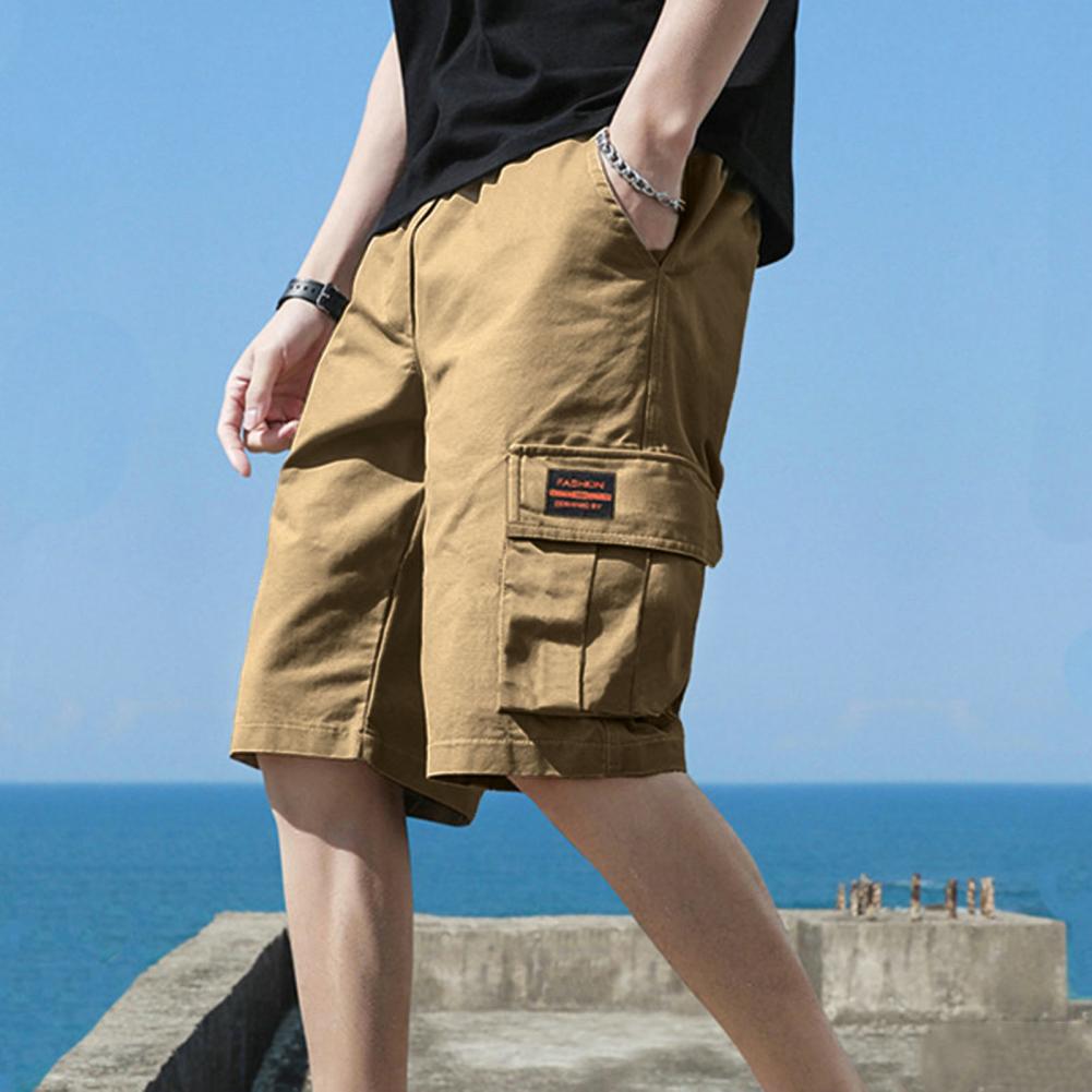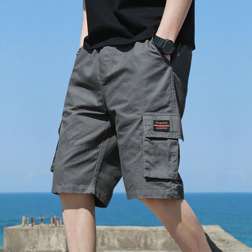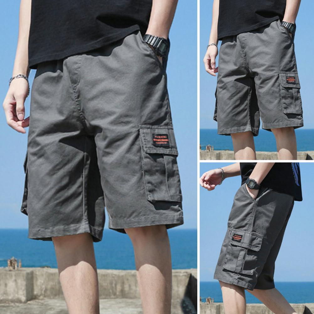 Men Cargo Shorts Loose Straight Multi Pockets Elastic Waist Casual Knee Length Deep Crotch Breathable Men Summer Sport Streetwear Shorts