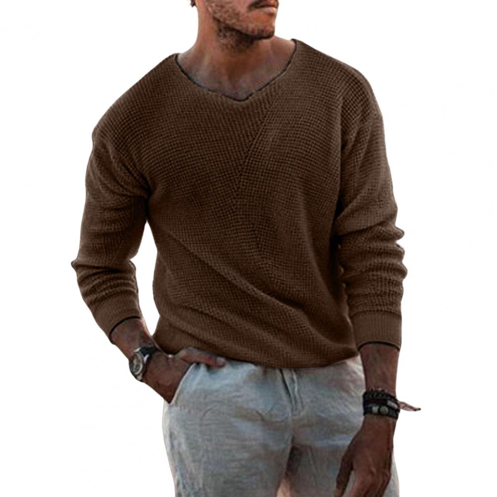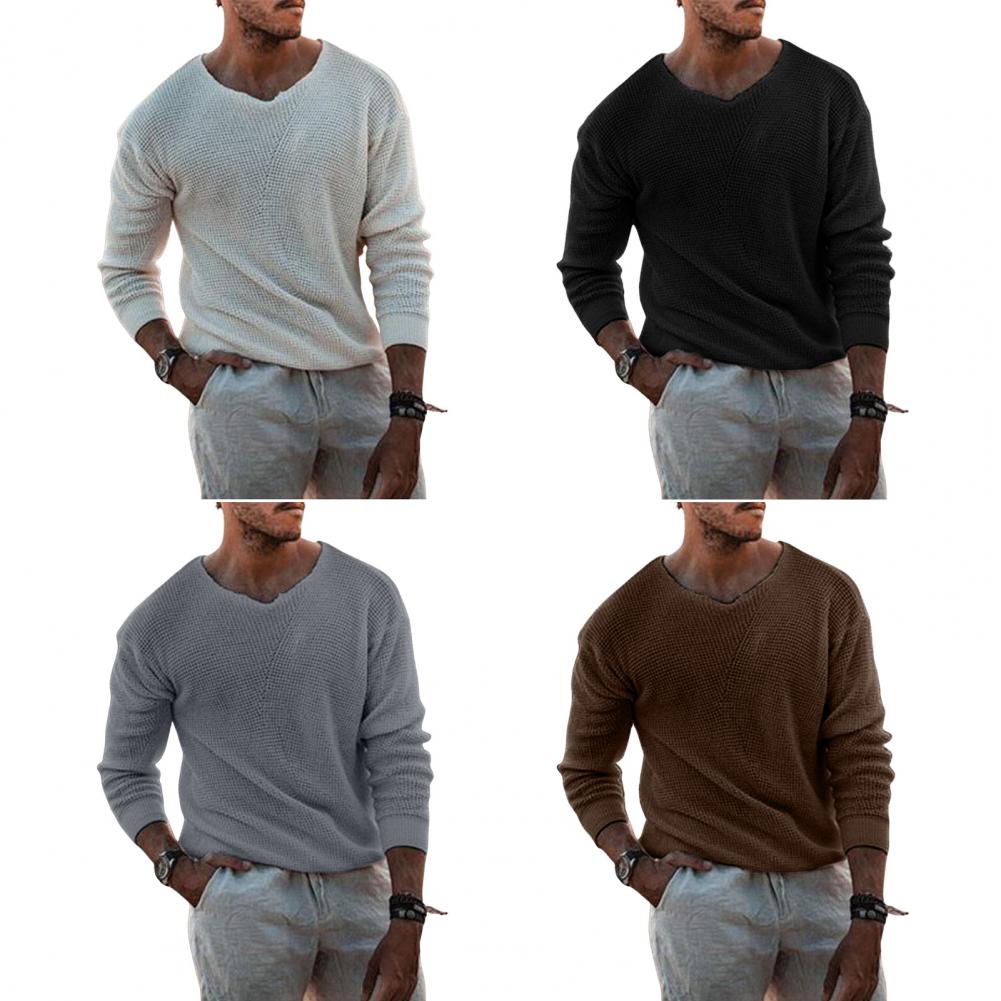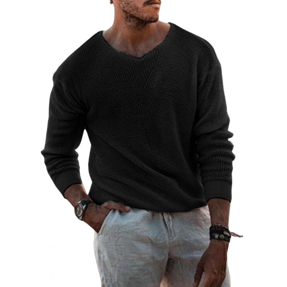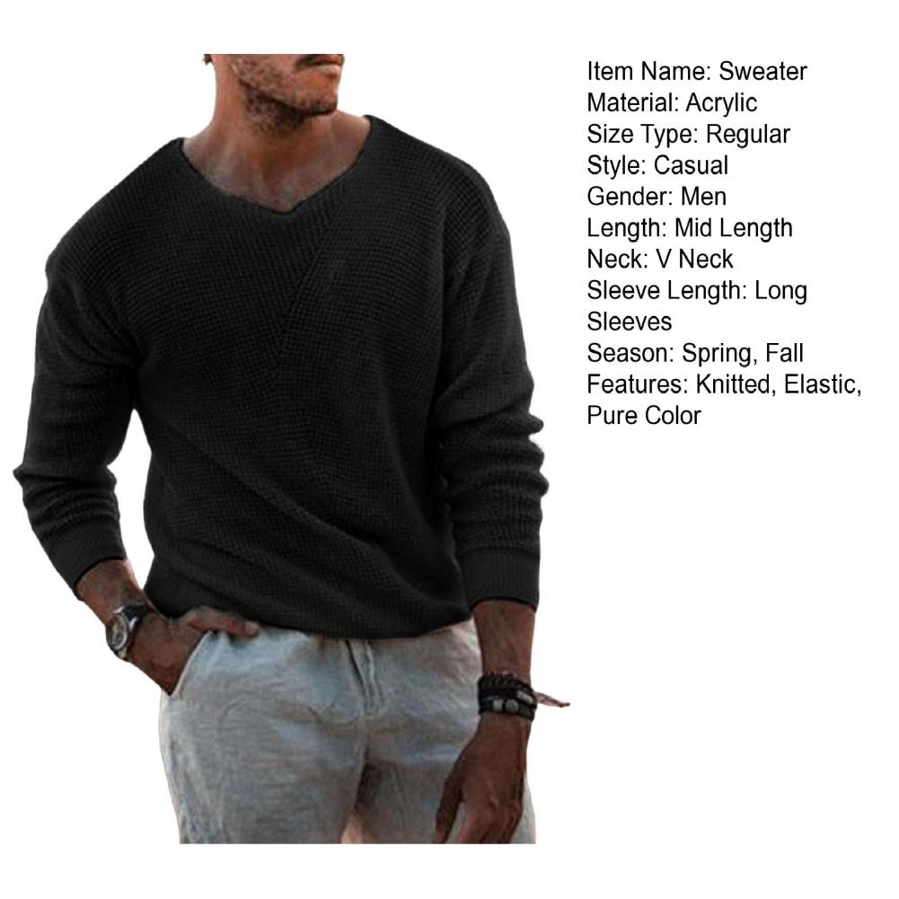 Fall Winter Men Sweater Knitted Solid Color Stretchy Loose High Elasticity Long Sleeves V Neck Pullover Casual Daily Wear Sweater