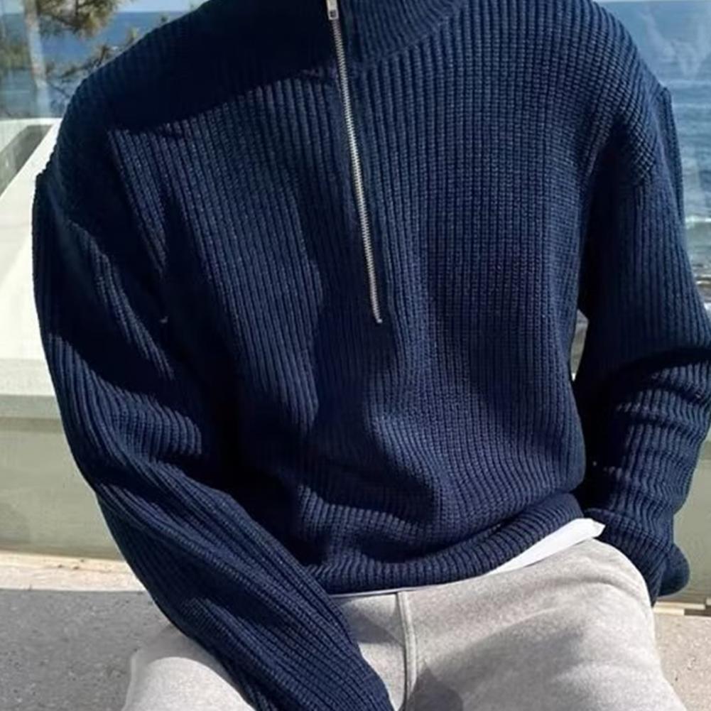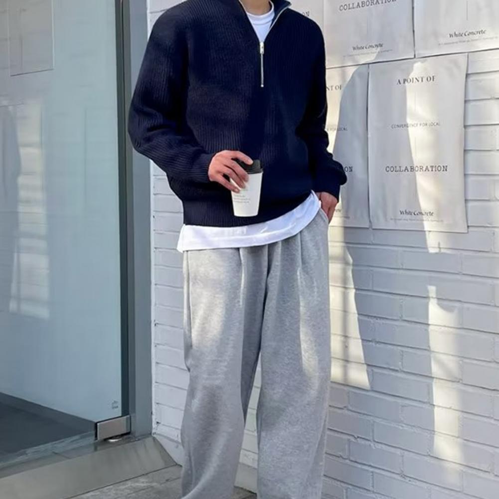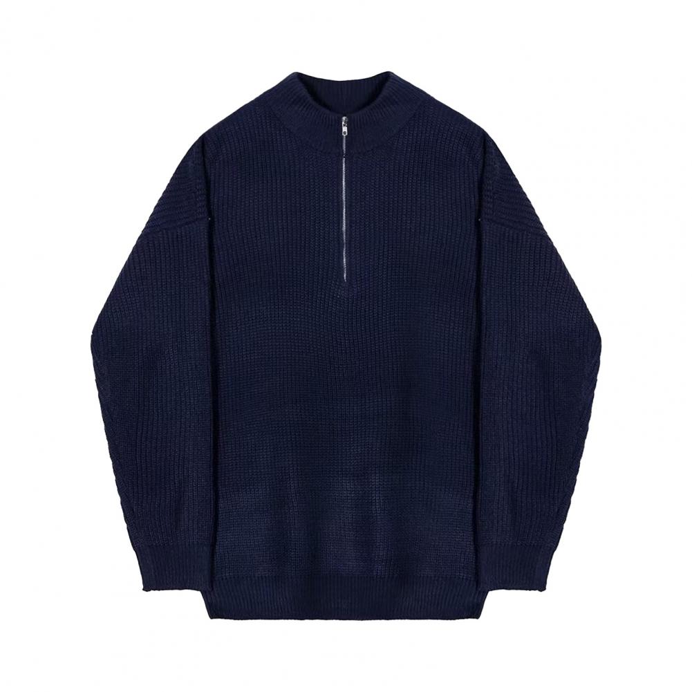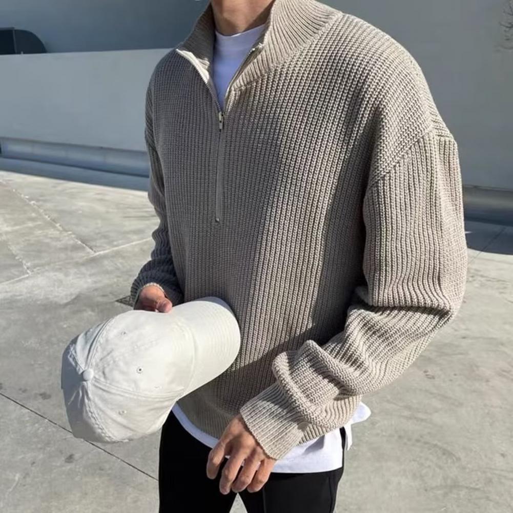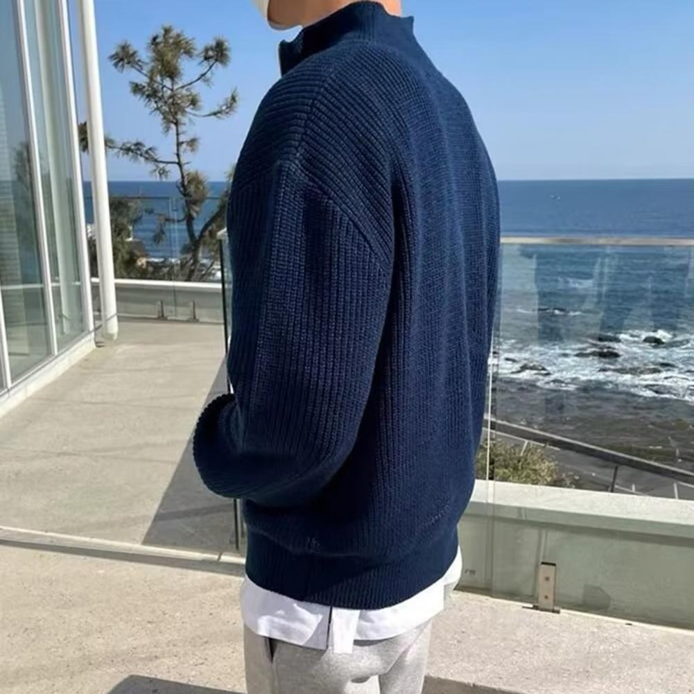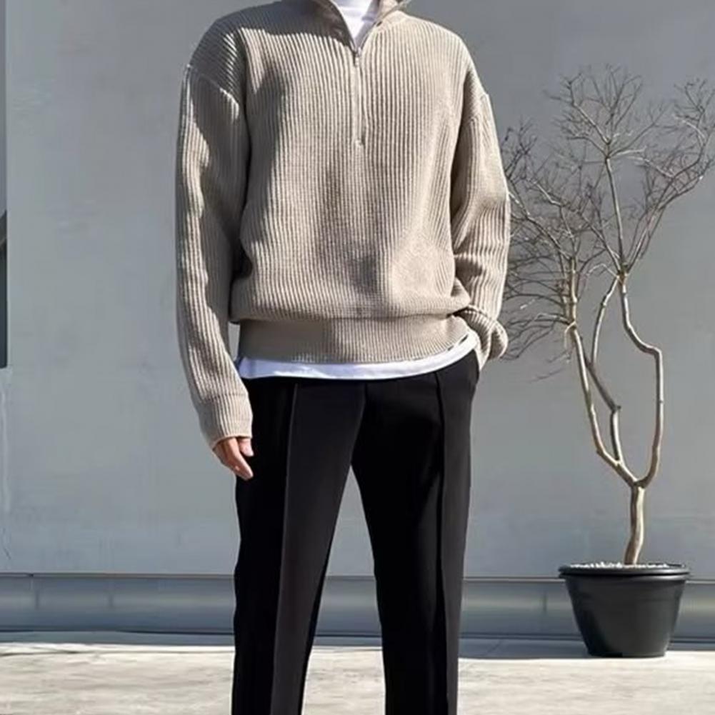 • 2024 Spring Autumn Men New Fashion Men Loose Half-high Collar Zipper Pullover Knitted Sweater Jacket All-match Clothing