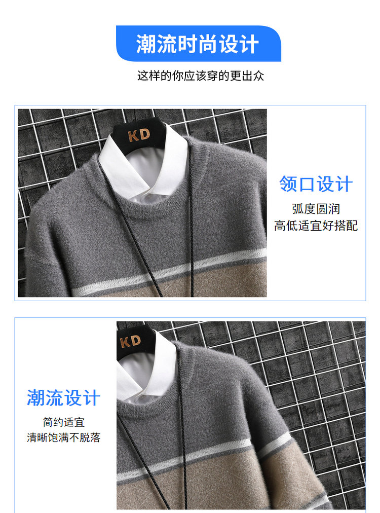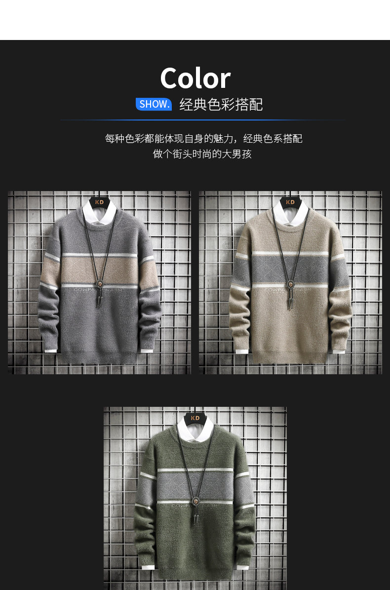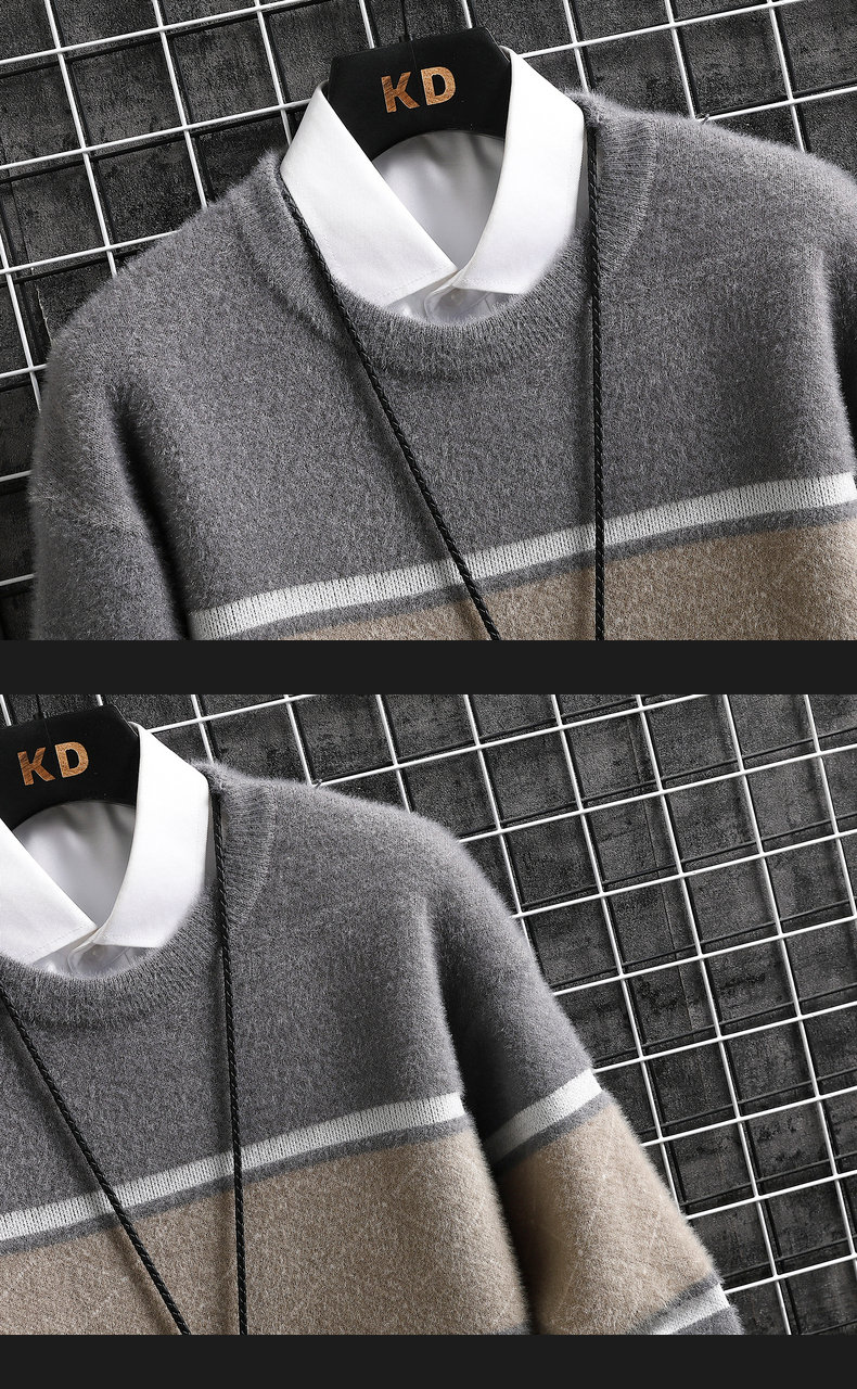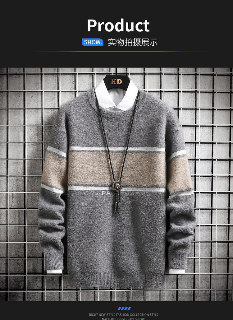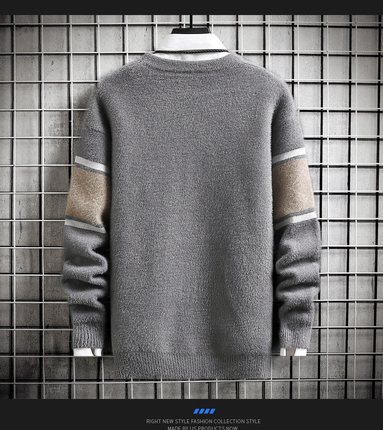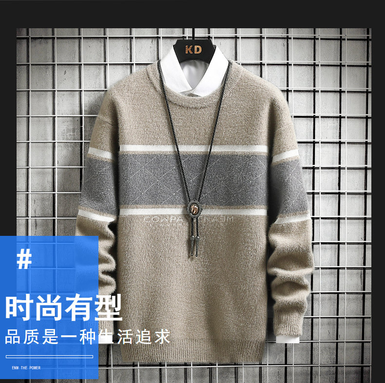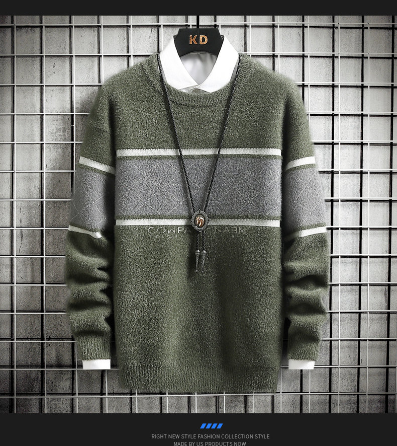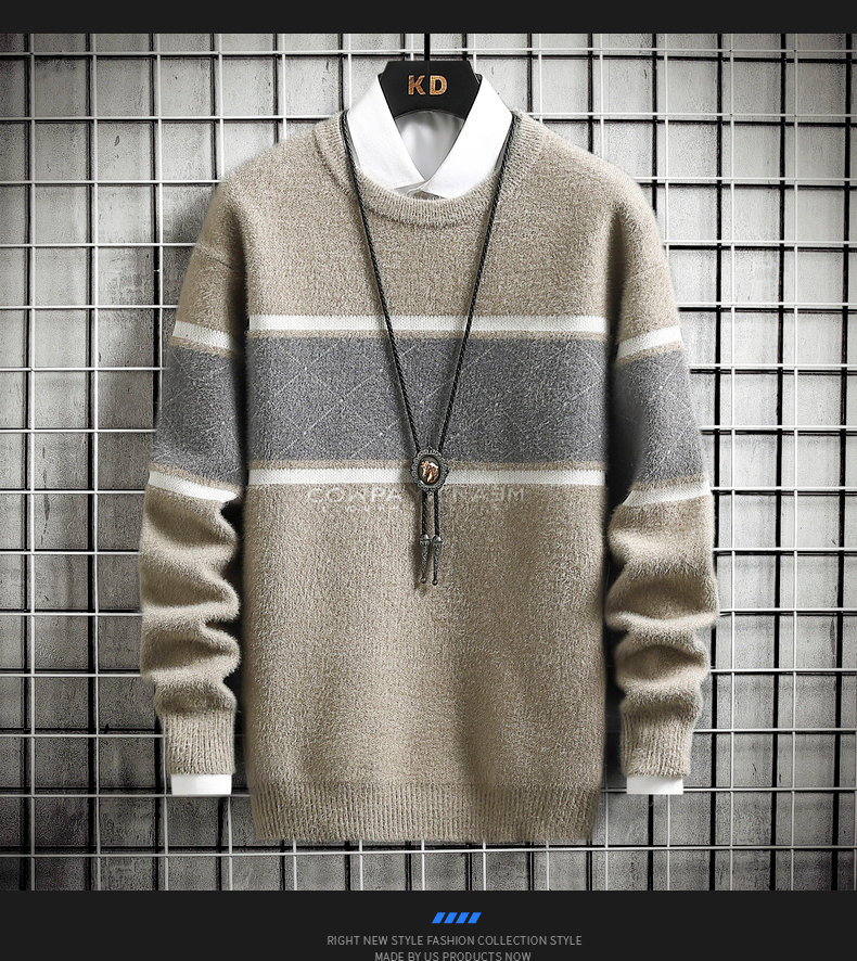 • Mens Autumn Winter Striped Sweater Pullover Mens Casual Loose Round Neck Knitted Pullover Jumper Street Daily Trend Sweatshirt