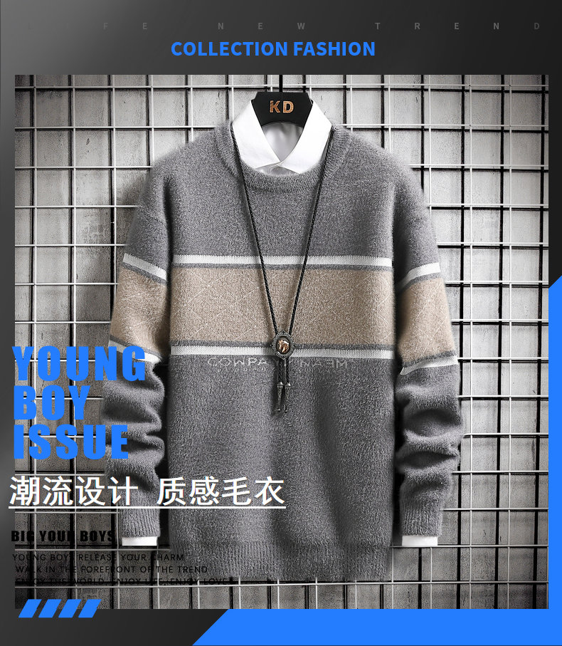 Mens Autumn Winter Striped Sweater Pullover Mens Casual Loose Round Neck Knitted Pullover Jumper Street Daily Trend Sweatshirt