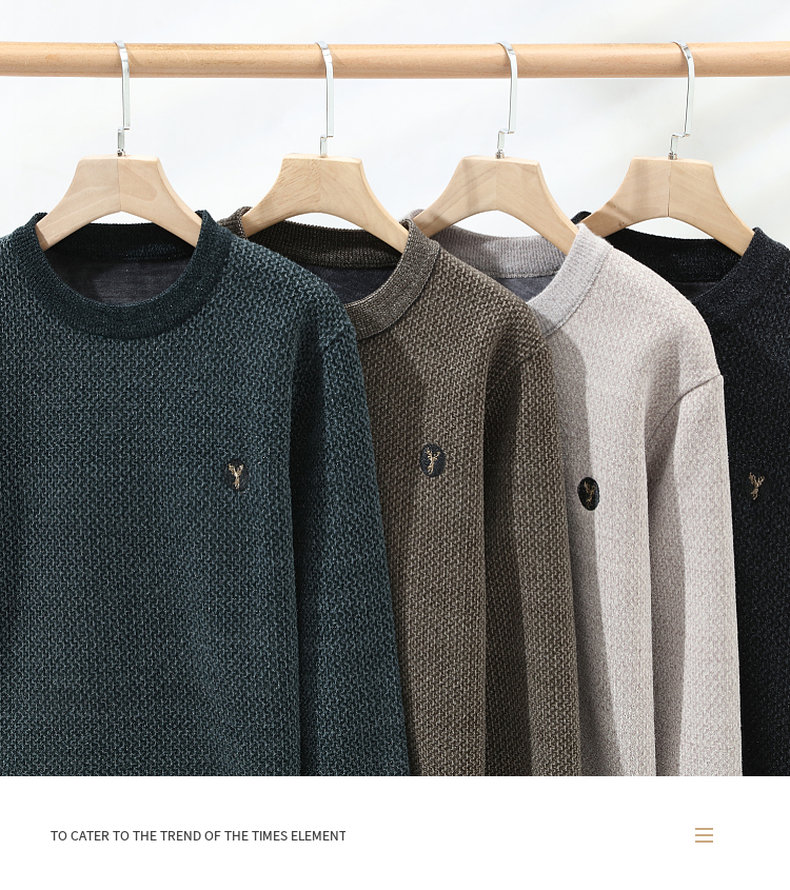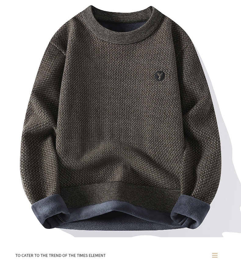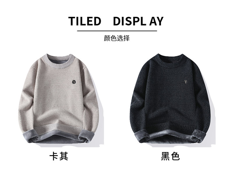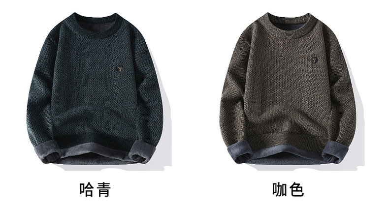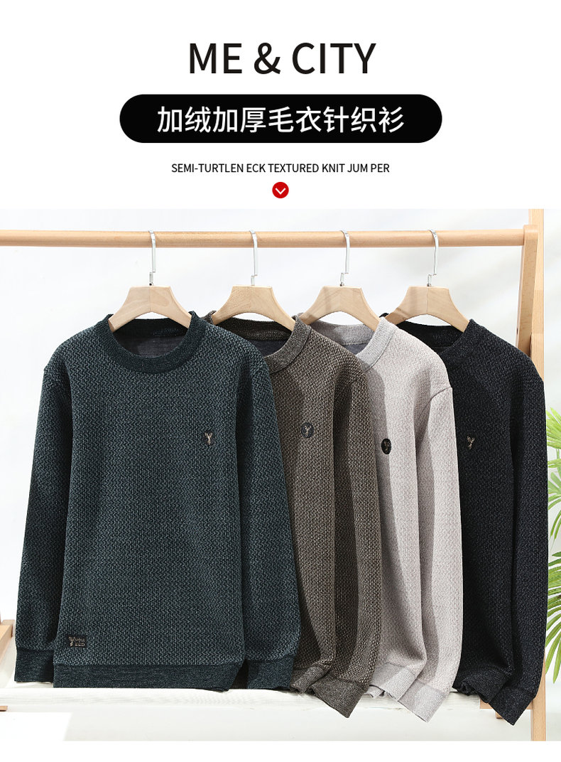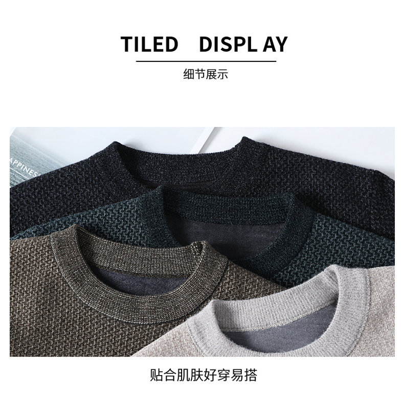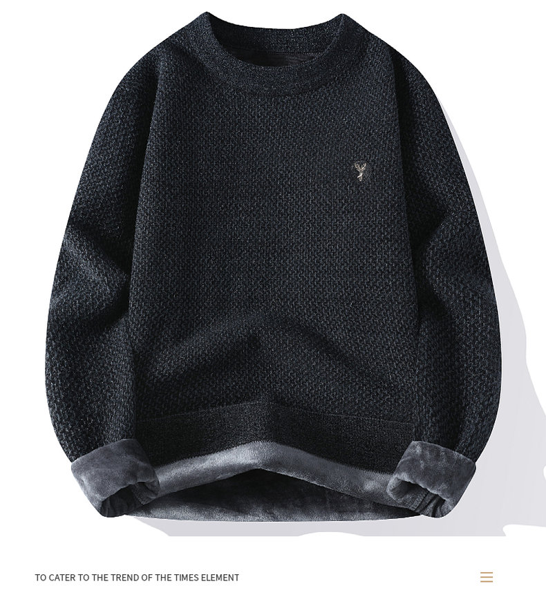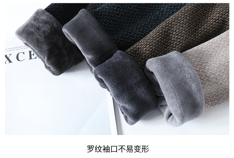 • Mens Winter New Sweater Mens Casual Slim Solid Thicken Fleece Warm Knitted Pullover High Quality Cotton Windproof Sweatshirt 4XL